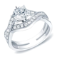 Auriya 3 1/2ctw Round Diamond Engagement Ring Set 14k Gold Certified