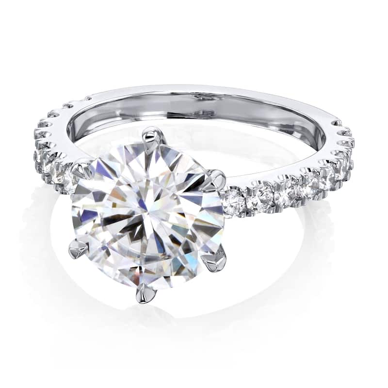Annello by Kobelli 3.10 Carat Round Moissanite and 1/2ct Lab Grown Diamond 6-Prong Engagement Ring in 14k Gold (DEF/VS)
