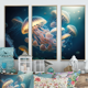 Designart "Jellyfish In the Ocean I" Animal Fish Framed Canvas Art Print - 3 Panels