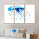 Designart "Large Light Blue Jellyfish" Animal Framed Wall Art Set of 3 - 4 Colors of Frames