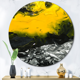 Designart 'Yellow Black And White Liquid Art VIII' Modern Metal Circle Wall Art