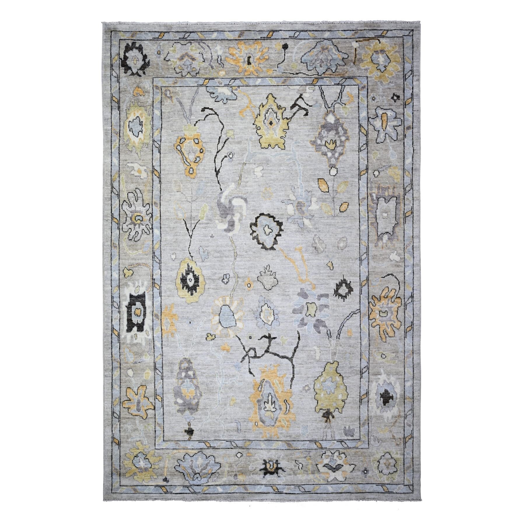 Hand Knotted Grey Oushak And Peshawar with Wool Oriental Rug (6'3" x 9'3") - 6'3" x 9'3"