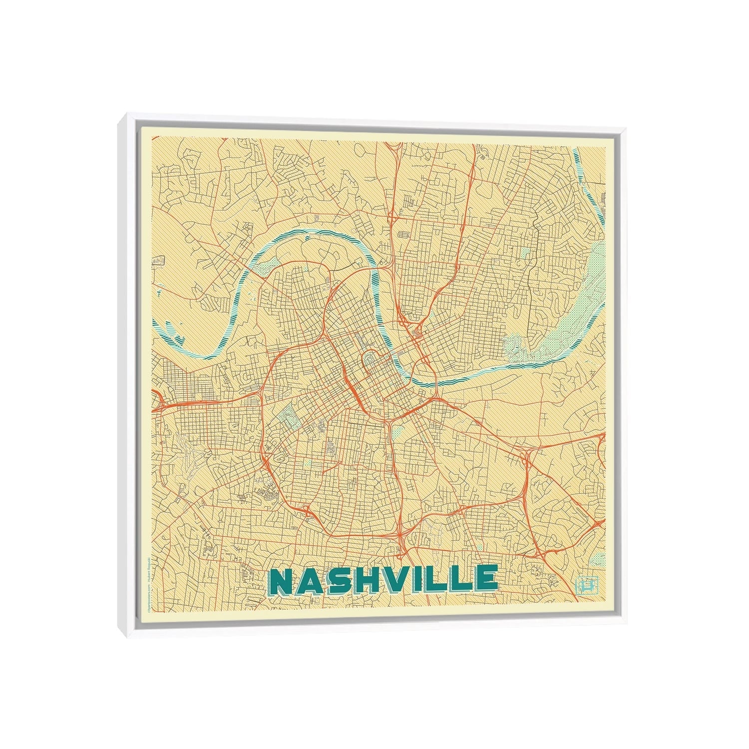 iCanvas "Nashville Retro Urban Blueprint Map" by Hubert Roguski Framed Canvas Print