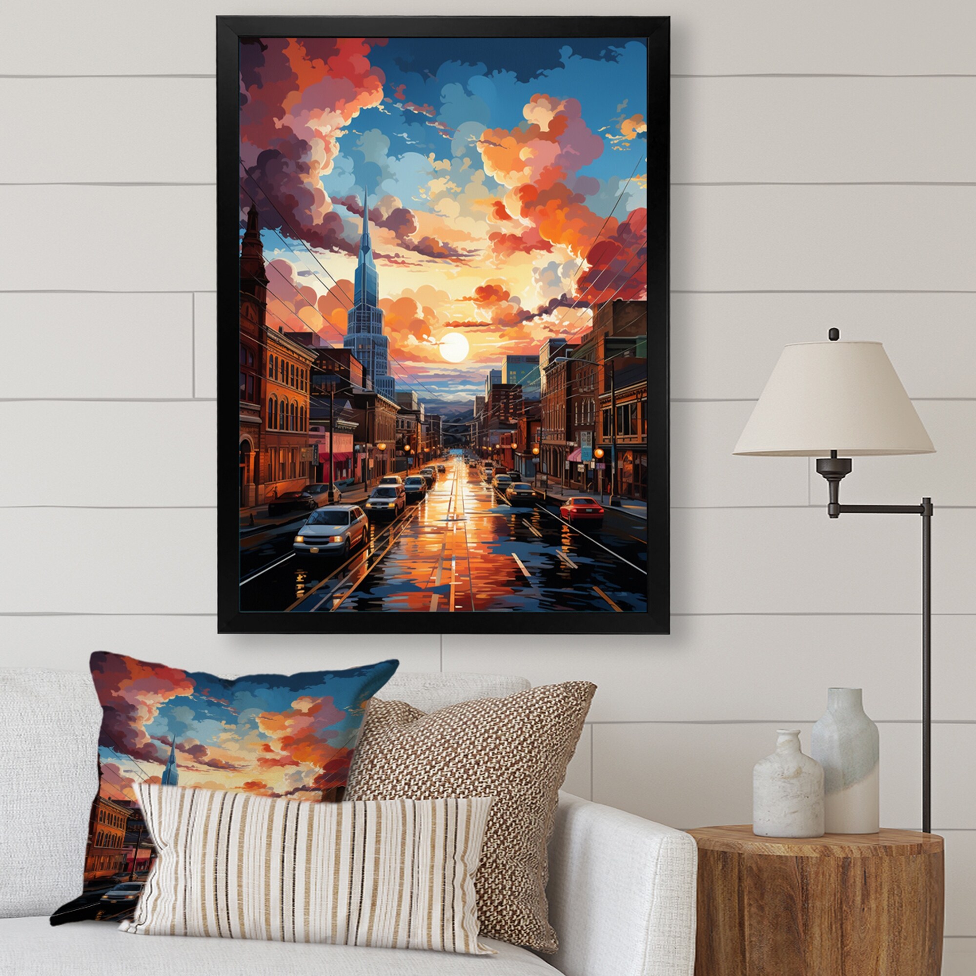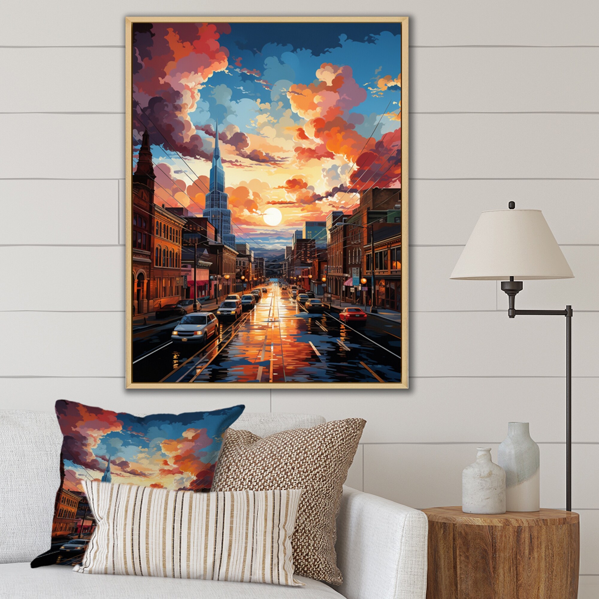 Designart "City Nashville Popart I" Nashville Framed Canvas Prints