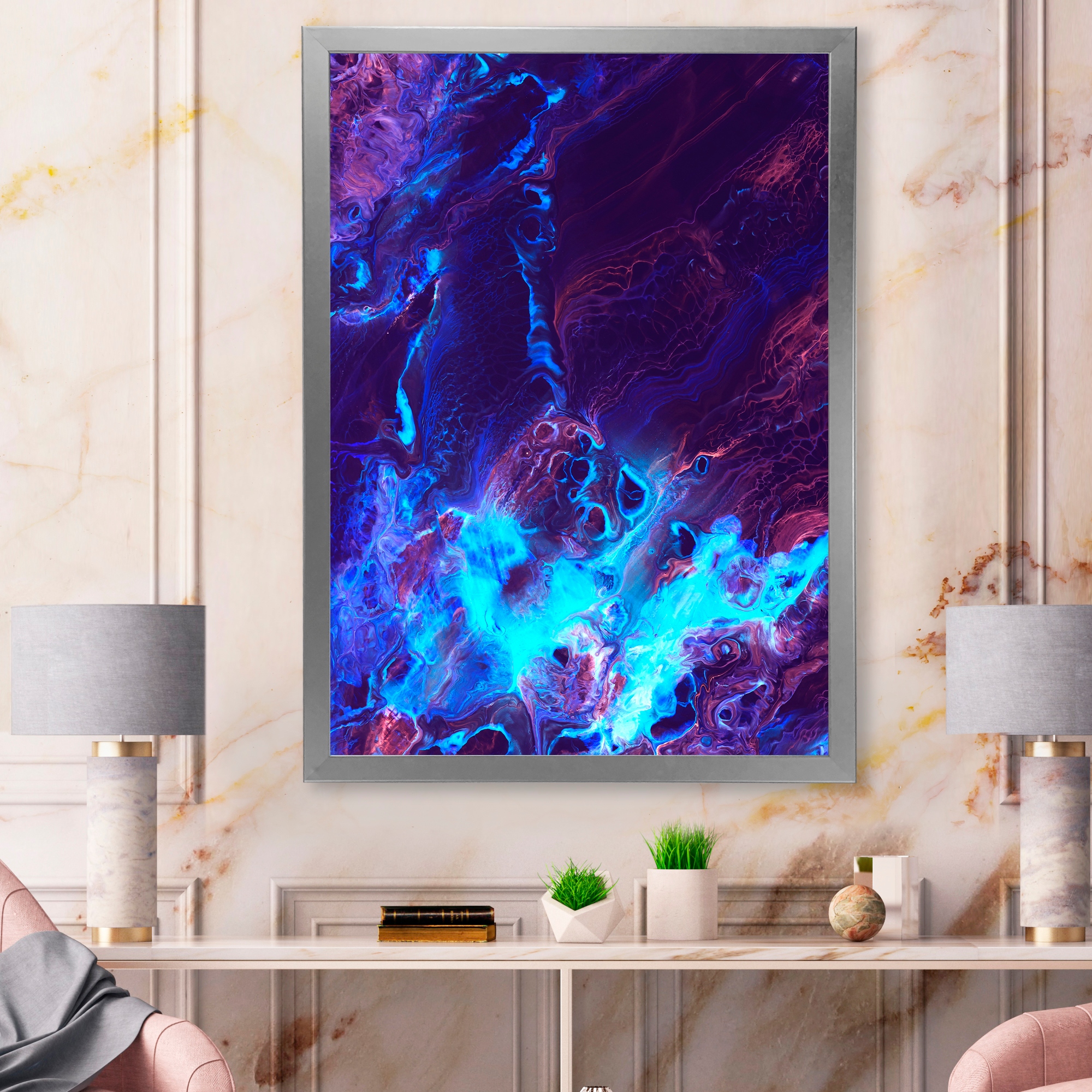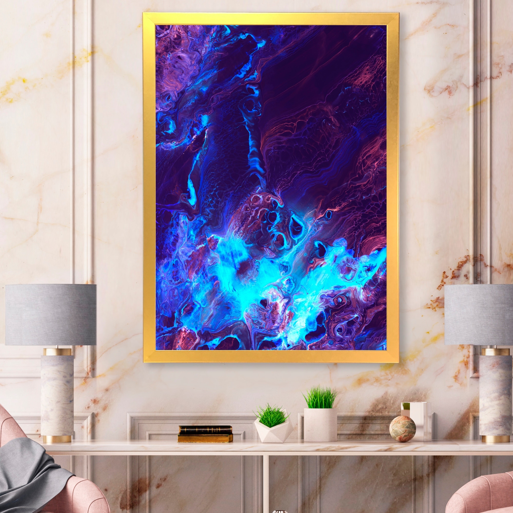 Designart "Neon Liquid Art in Purple And Blue" Modern Framed Art Print
