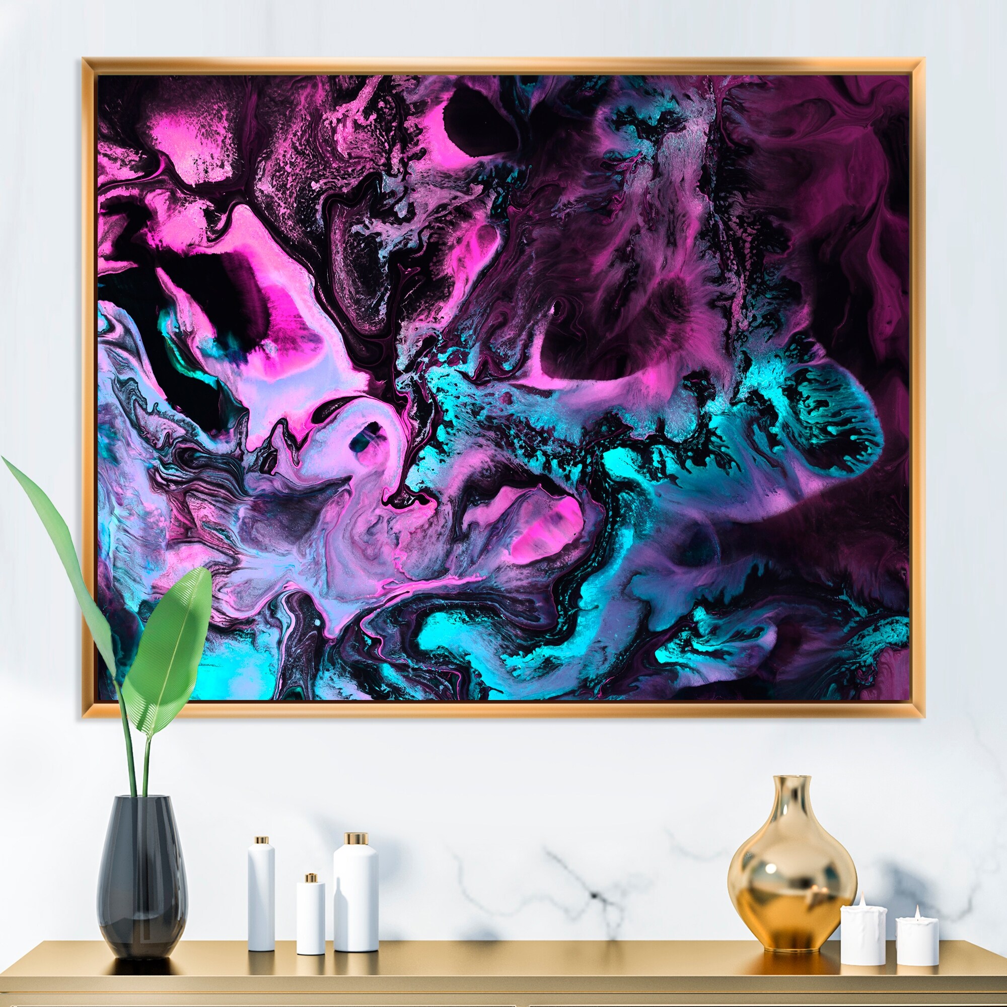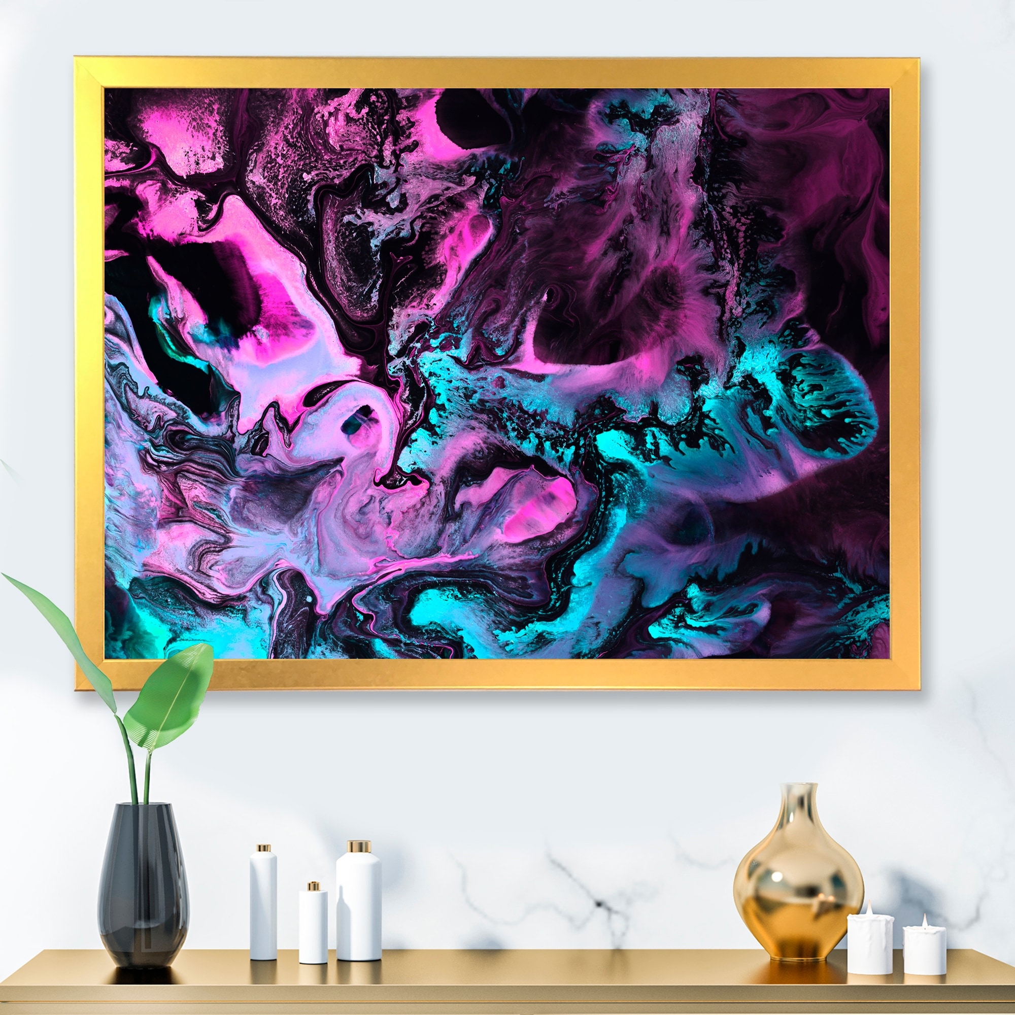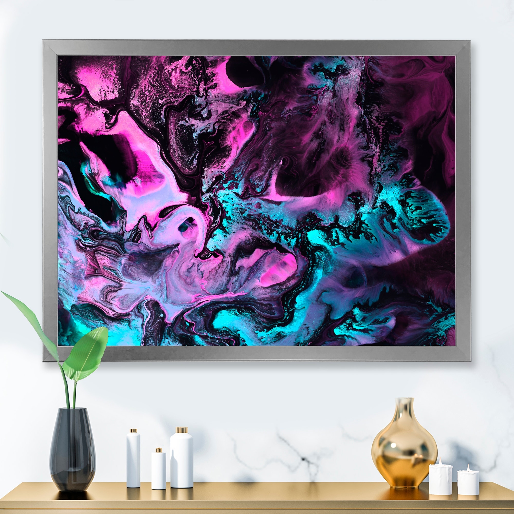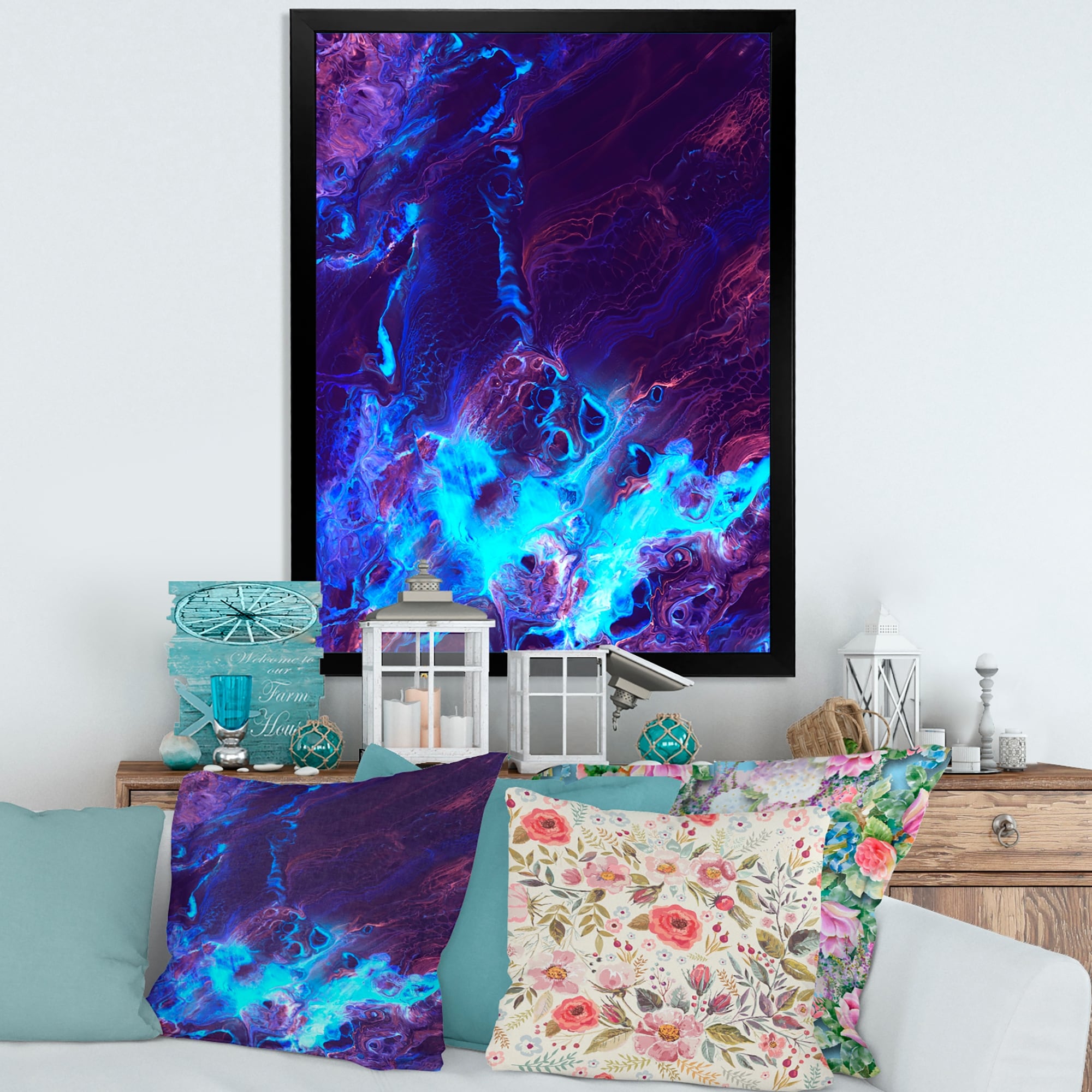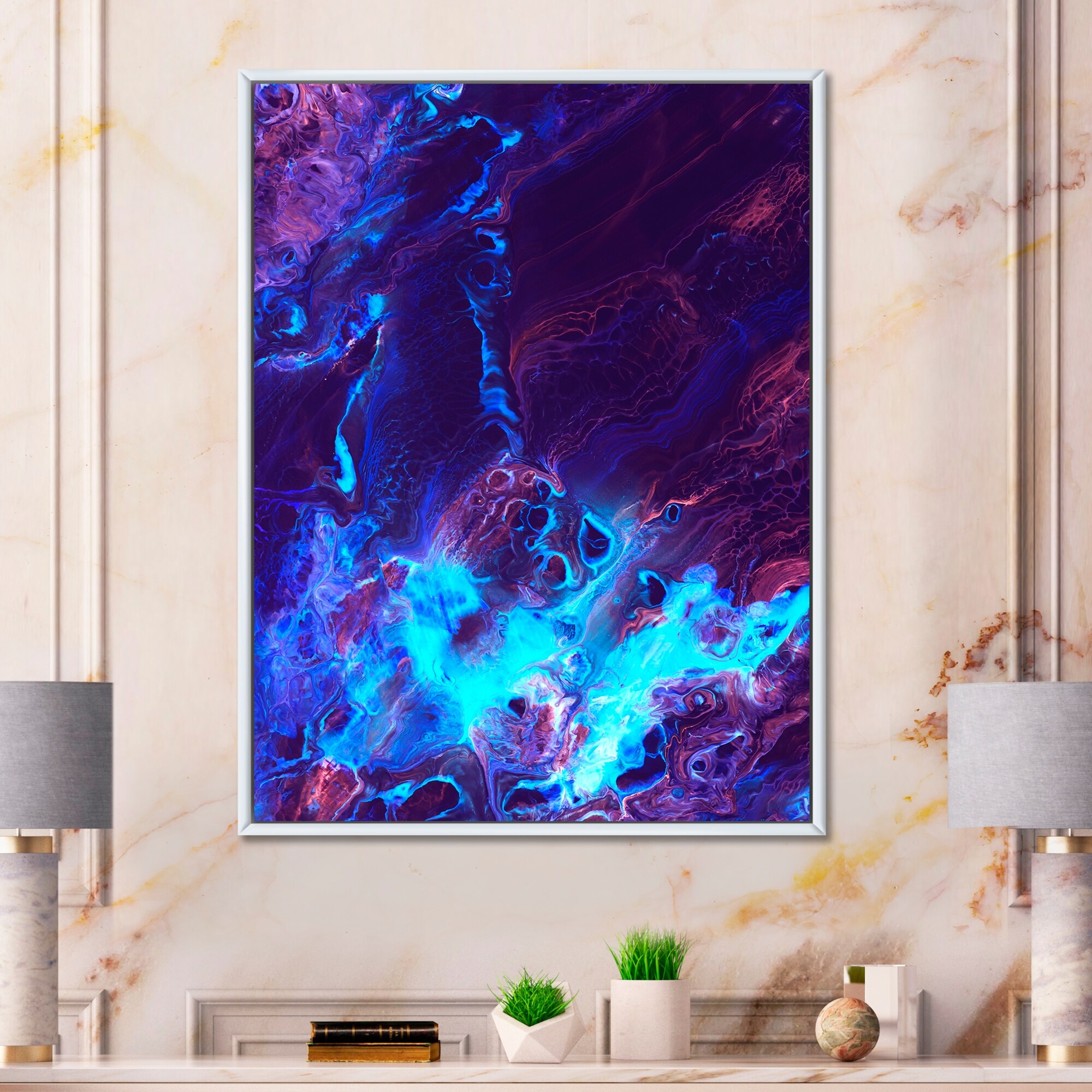 Designart "Neon Liquid Art in Purple And Blue" Modern Framed Canvas Wall Art Print