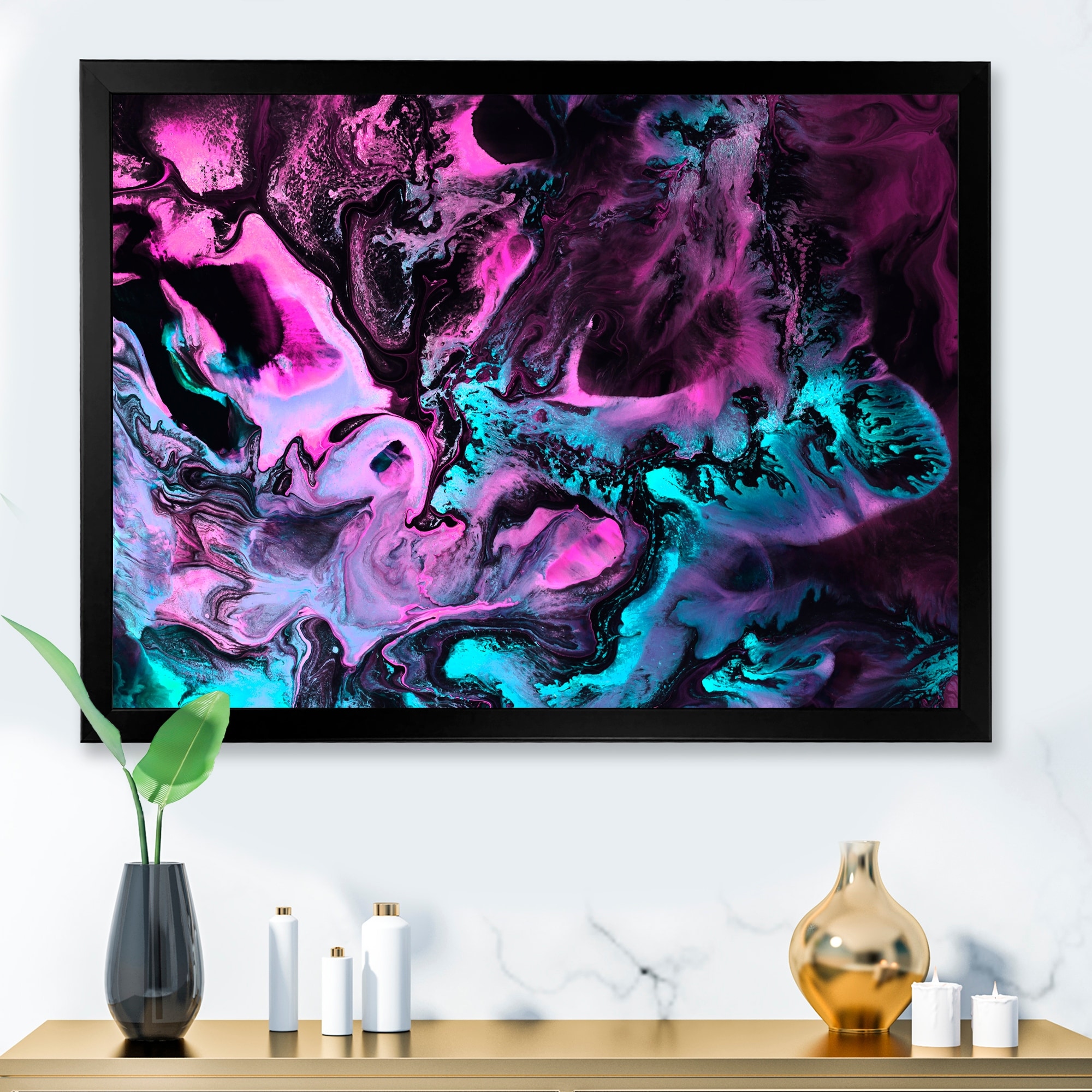Designart "Neon Green And Pink Liquid Art" Modern Framed Art Print