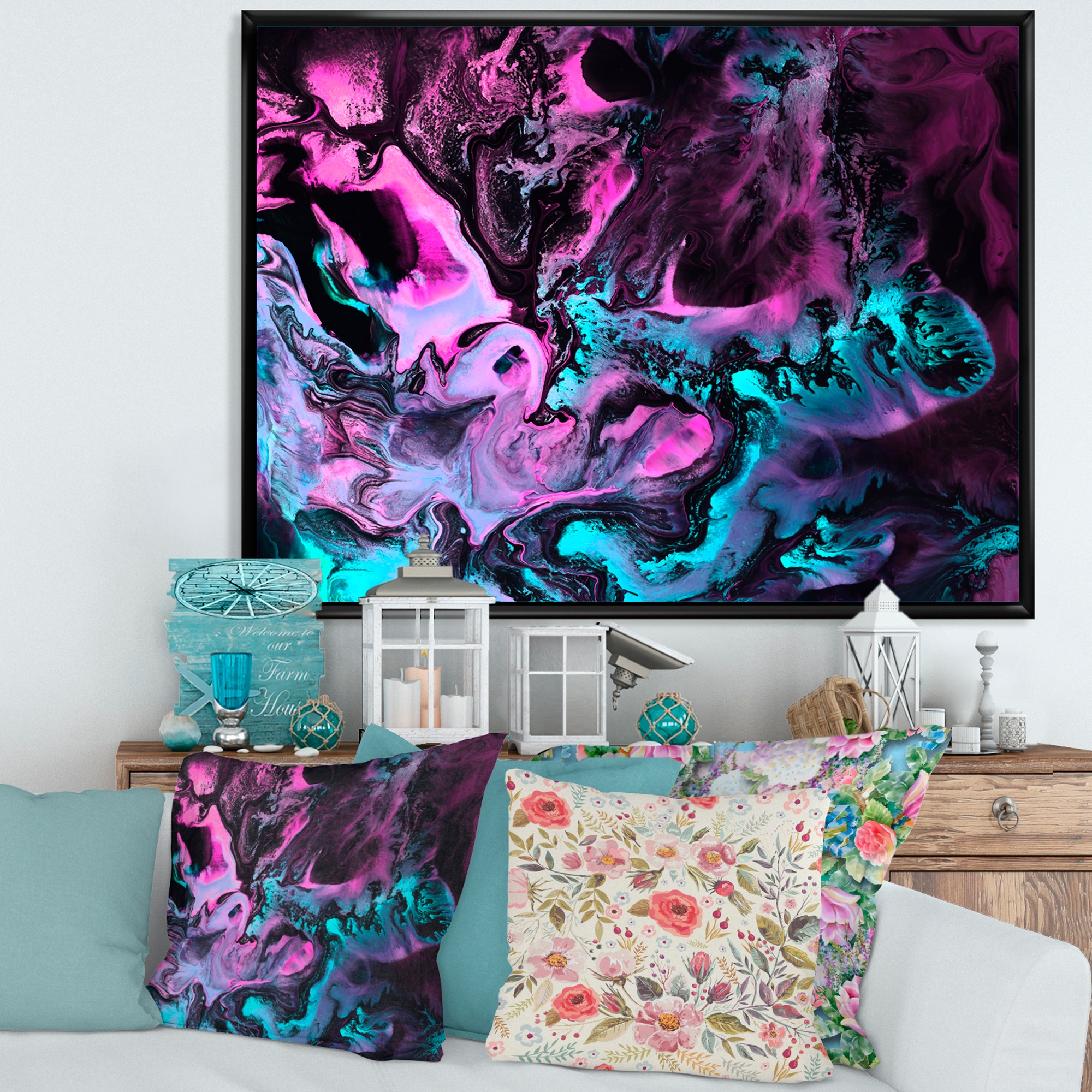 Designart "Neon Green And Pink Liquid Art" Modern Framed Canvas Wall Art Print