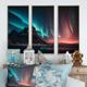 Designart "Northern Lights Reflected on the Water VI" Landscape Mountains Framed Canvas Wall Art Print - 3 Panels