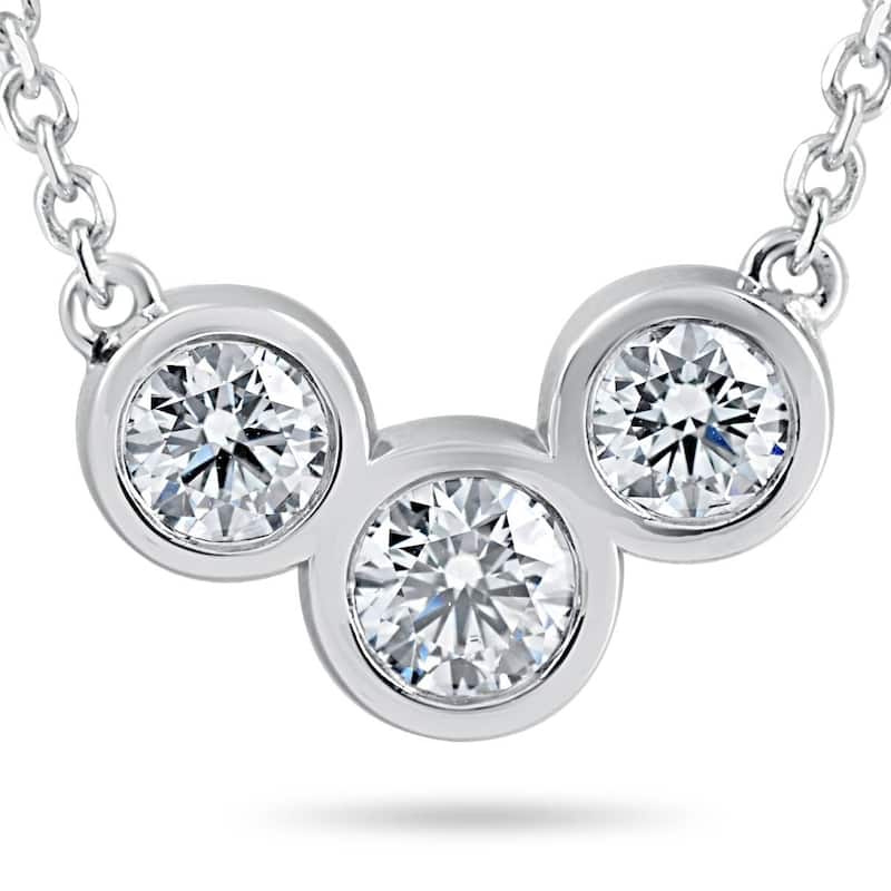 1 3/4ct Diamond 3 Stone Bezel Pendant White Gold 18" Lobster Clasp Lab Grown
