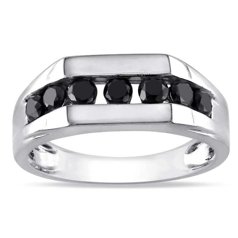 Miadora 10k White Gold 1ct TDW Black Diamond Men's Ring