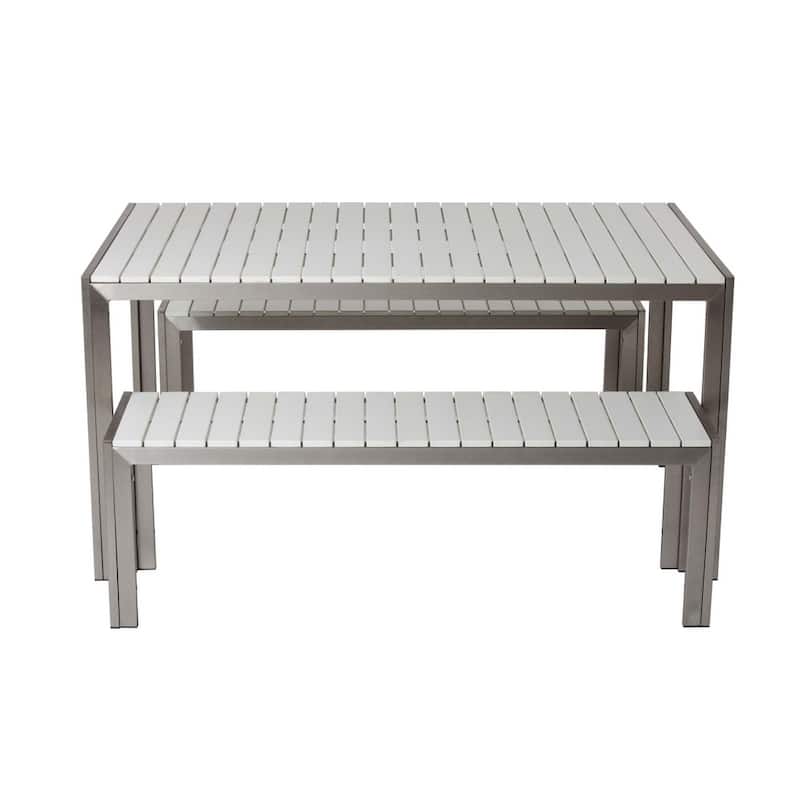 Straightforwardly Trendy Anodized Aluminum Table And Bench Set in White (Set of 3)