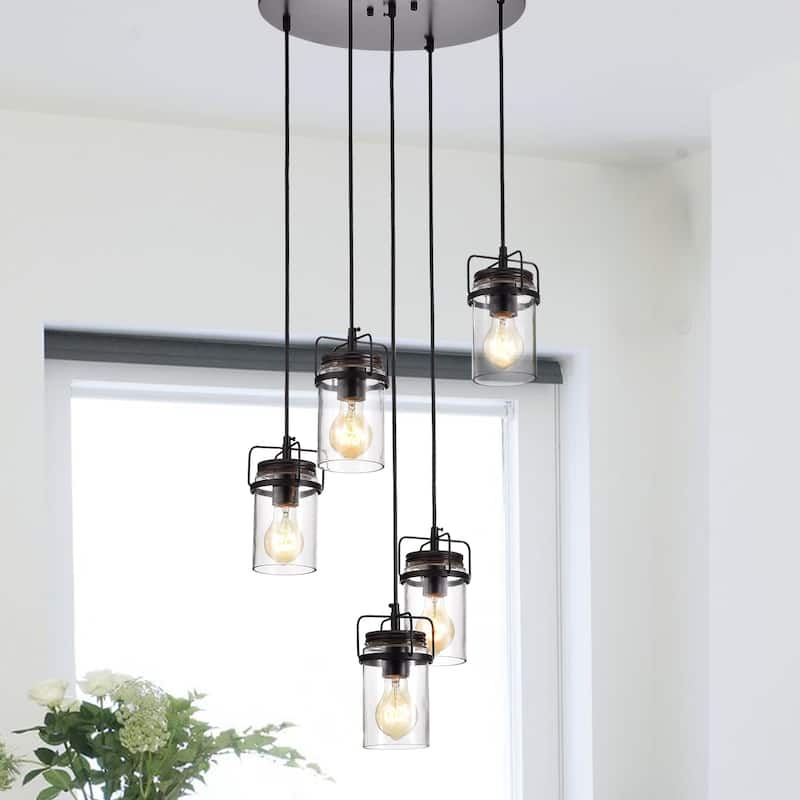 Joanna Oil Rubbed Bronze 5-Light Pendant with Clear Glass Shade