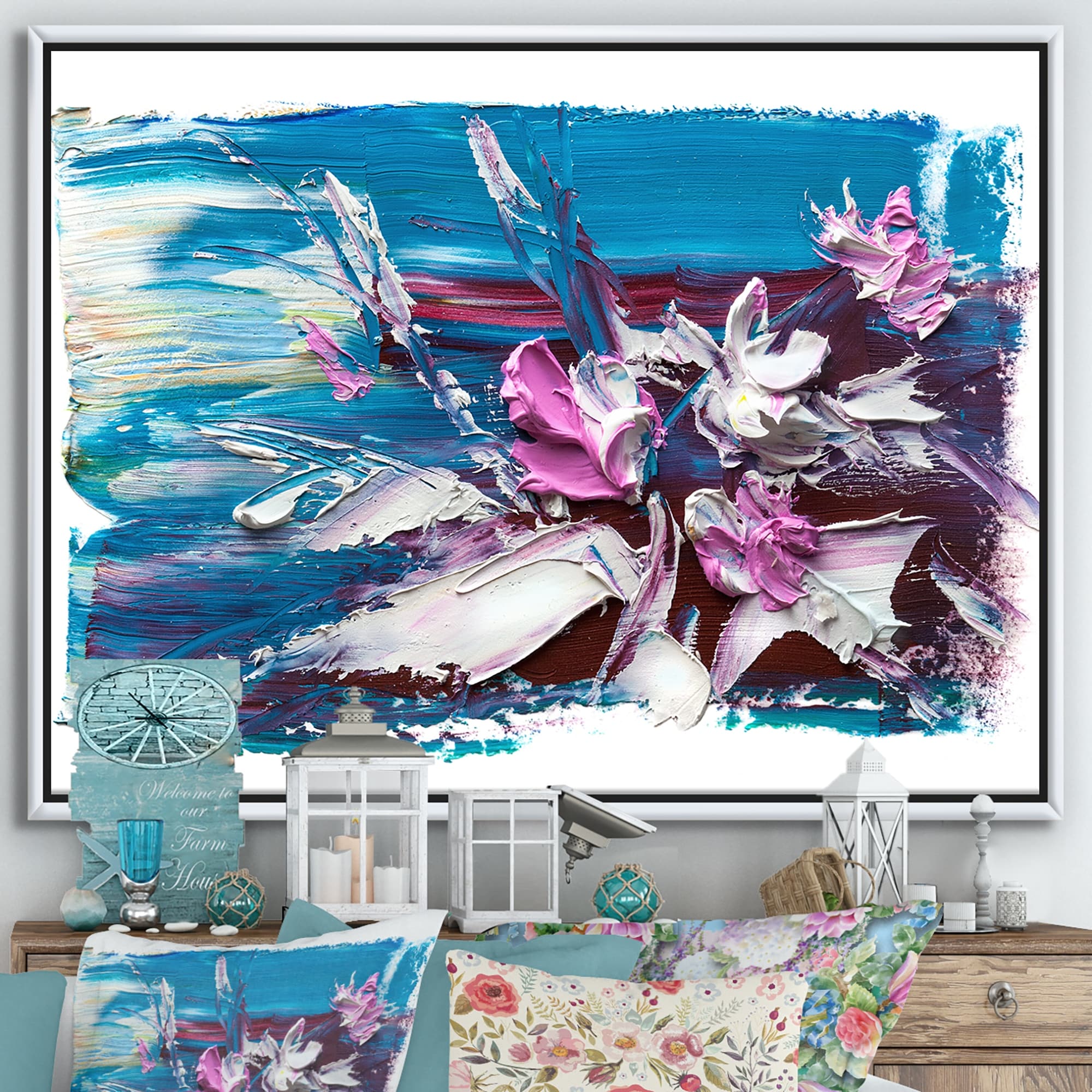 Designart "Oil Brushed Colorfields II" Modern Framed Canvas Wall Art Print