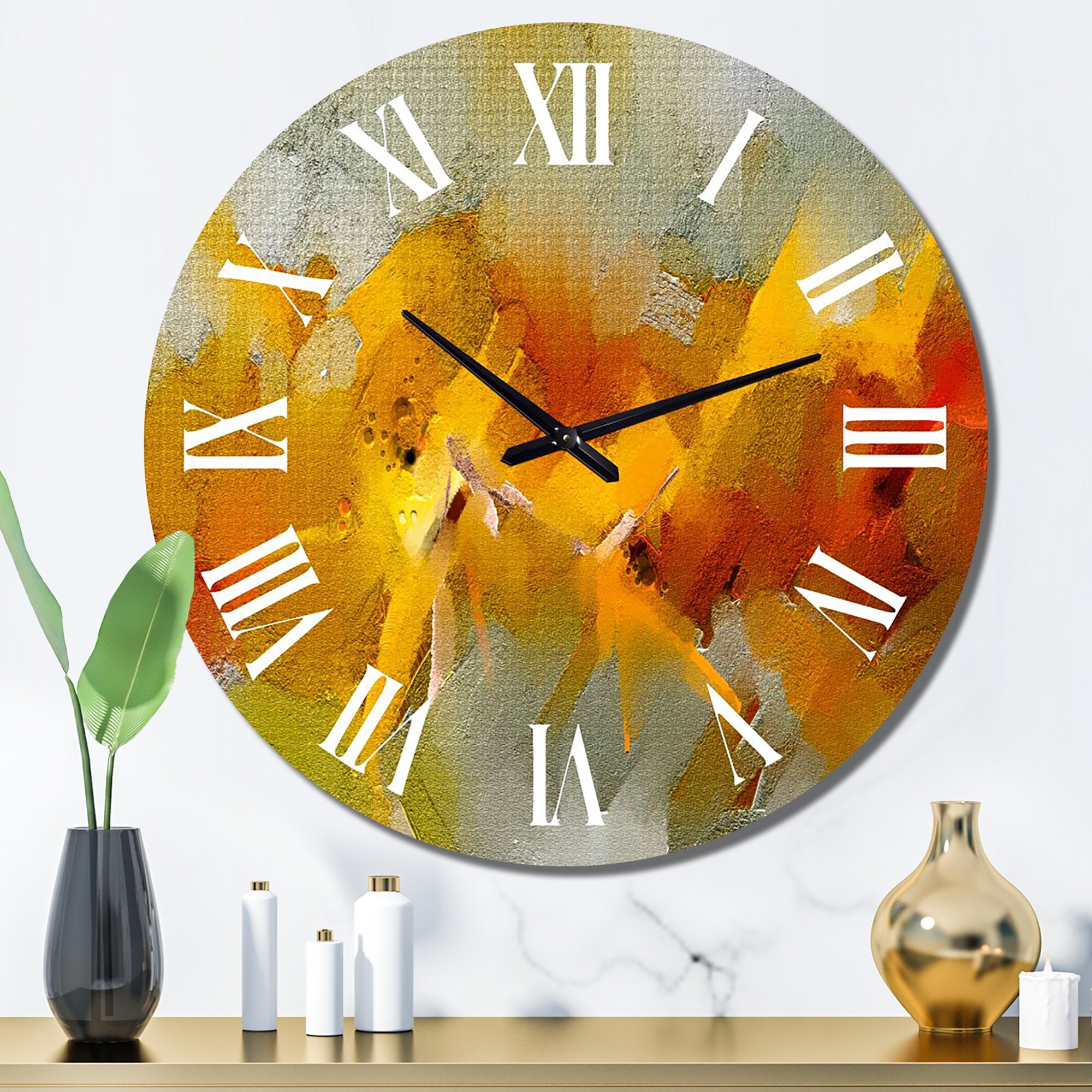 Designart 'Oil Brush Strokes in Yellow and Orange' Modern wall clock