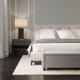 Beige Upholstered Platform Bed with Storage Ottoman By Crown Comfort
