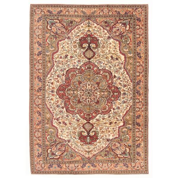 ECARPETGALLERY Hand-knotted Hereke Ivory Wool Rug - 6'7 x 9'3