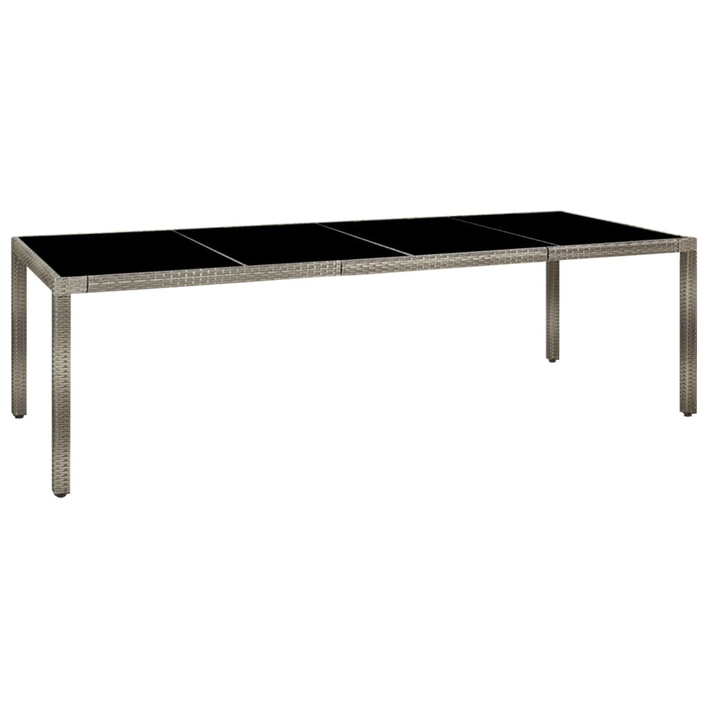 vidaXL Patio Table Gray 98.4"x39.4"x29.5" Tempered Glass and Poly Rattan - 98.4" x 39.4" x 29.5"