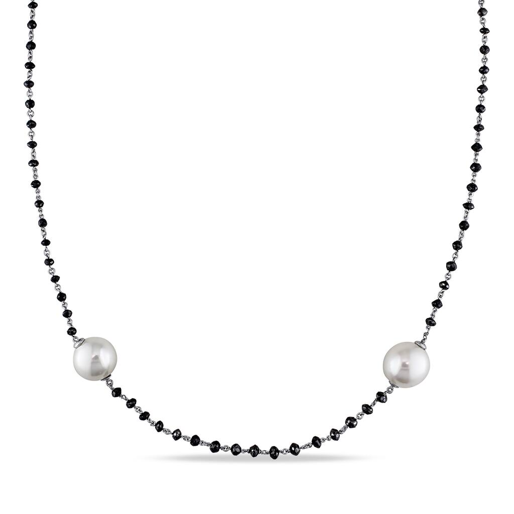 Miadora 14k White Gold South Sea Pearl 34 3/4ct TDW Black Diamond Necklace (11-12 mm) - Black/White