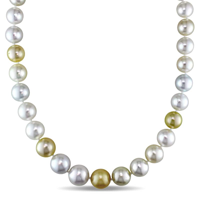 Miadora Signature Collection Cultured White & Gold South Sea Pearl Necklace with 14k Yellow Gold Ball Clasp (10-13 mm) - Multi