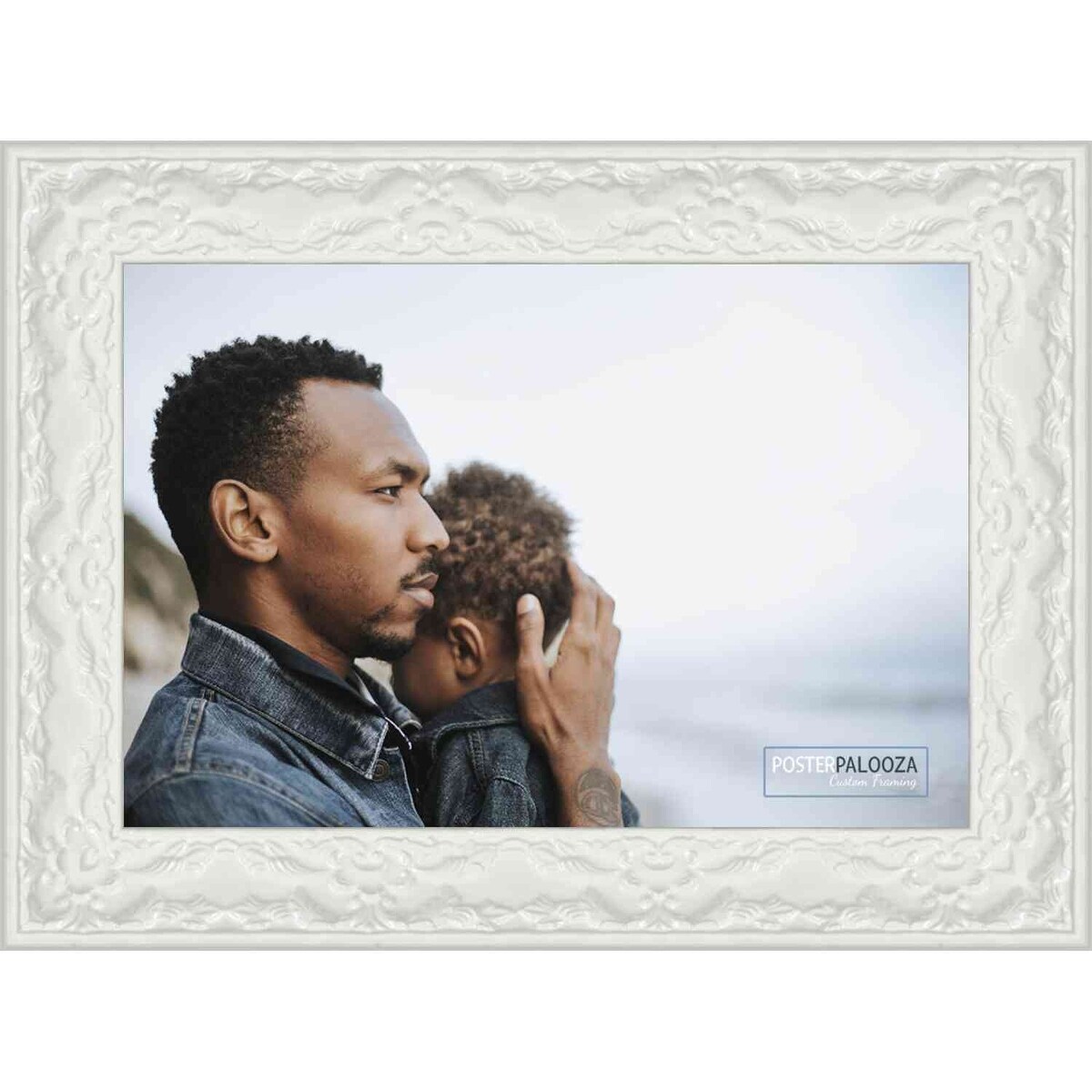 11x20 Frame Ornate Glossy White Complete Wood Picture Frame with UV Acrylic, Foam Board Backing, & Hardware