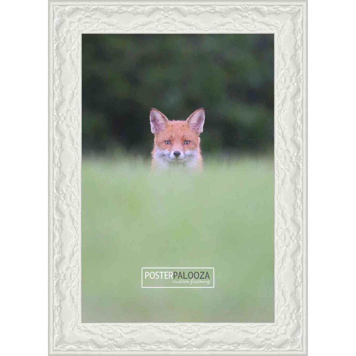24x28 Frame Ornate Glossy White Complete Wood Picture Frame with UV Acrylic, Foam Board Backing, & Hardware