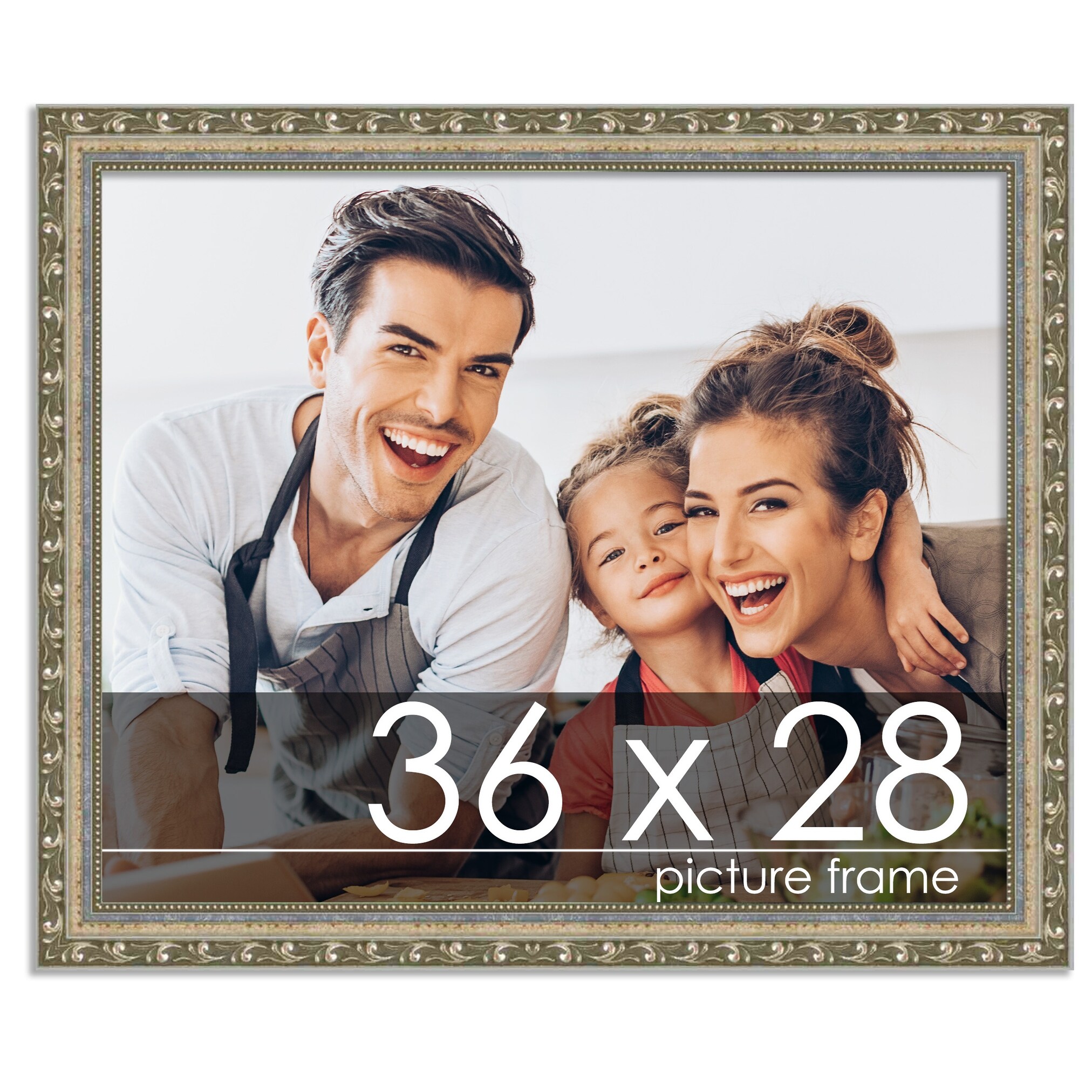 36x28 Frame Silver Ornate Antique Solid Complete Wood Picture Frame with UV Acrylic, Foam Board Backing, & Hardware