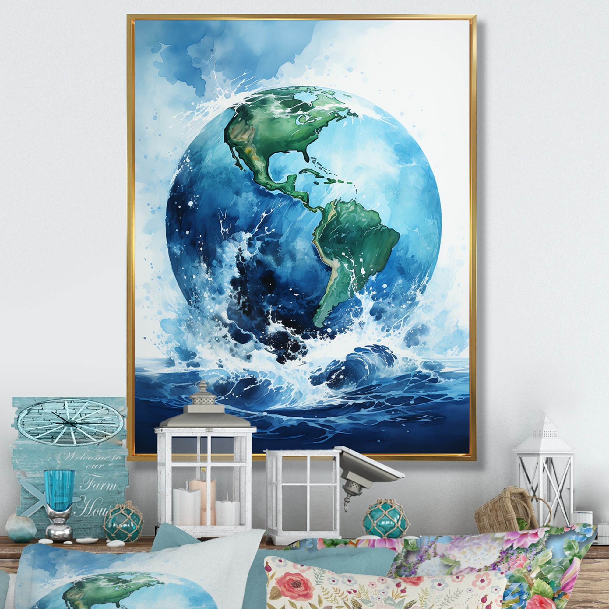 Designart "Earth Blue Planet I" Earth Framed Canvas Wall Art