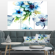 Designart "Seamless Summer Blue Flowers" Floral Art Canvas Print - 36x28 - 3 Panels