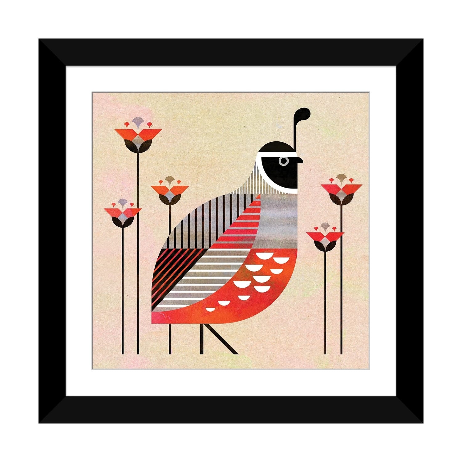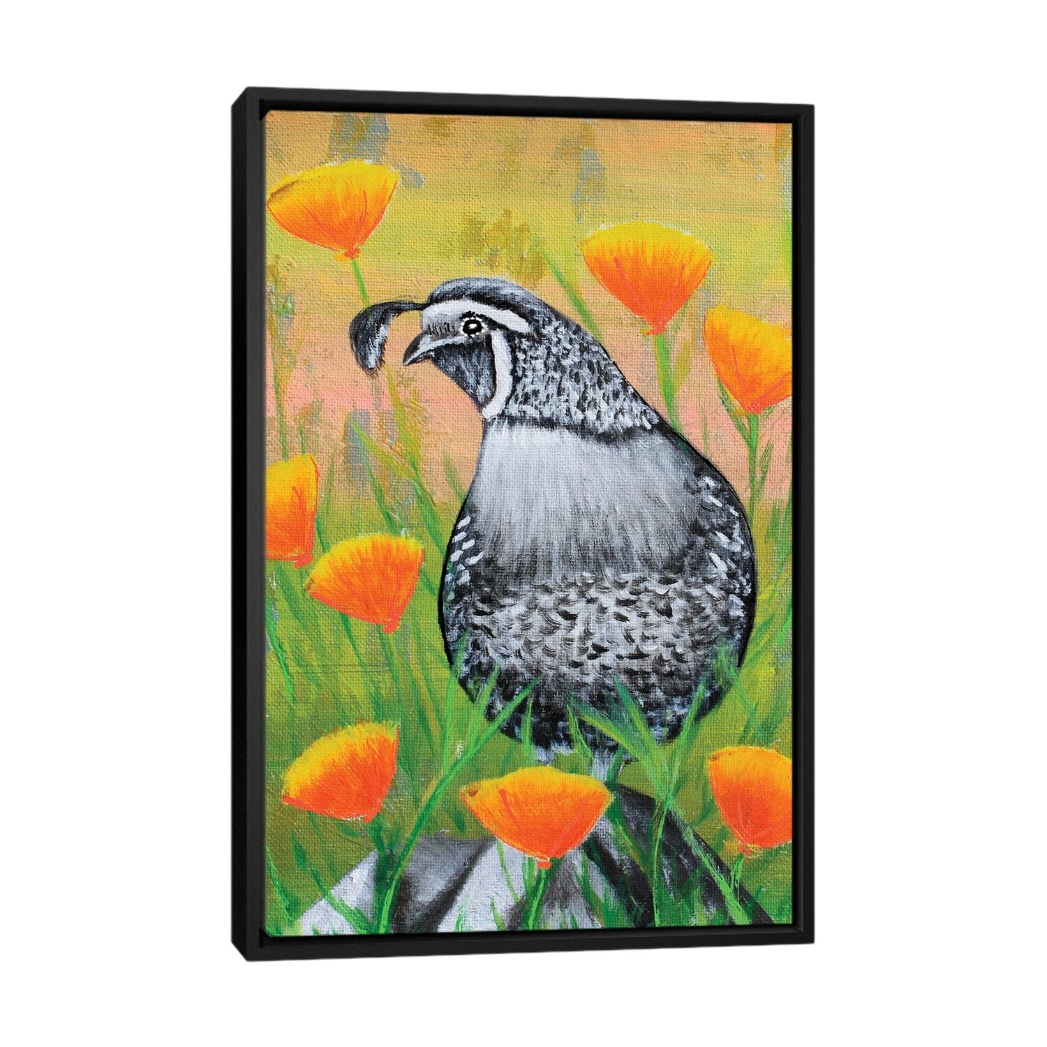 iCanvas "California Quail And Poppies" by Junnior Navarro Framed