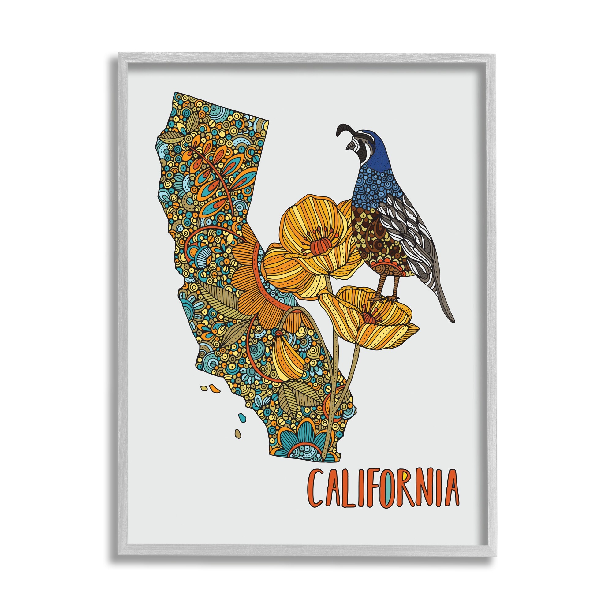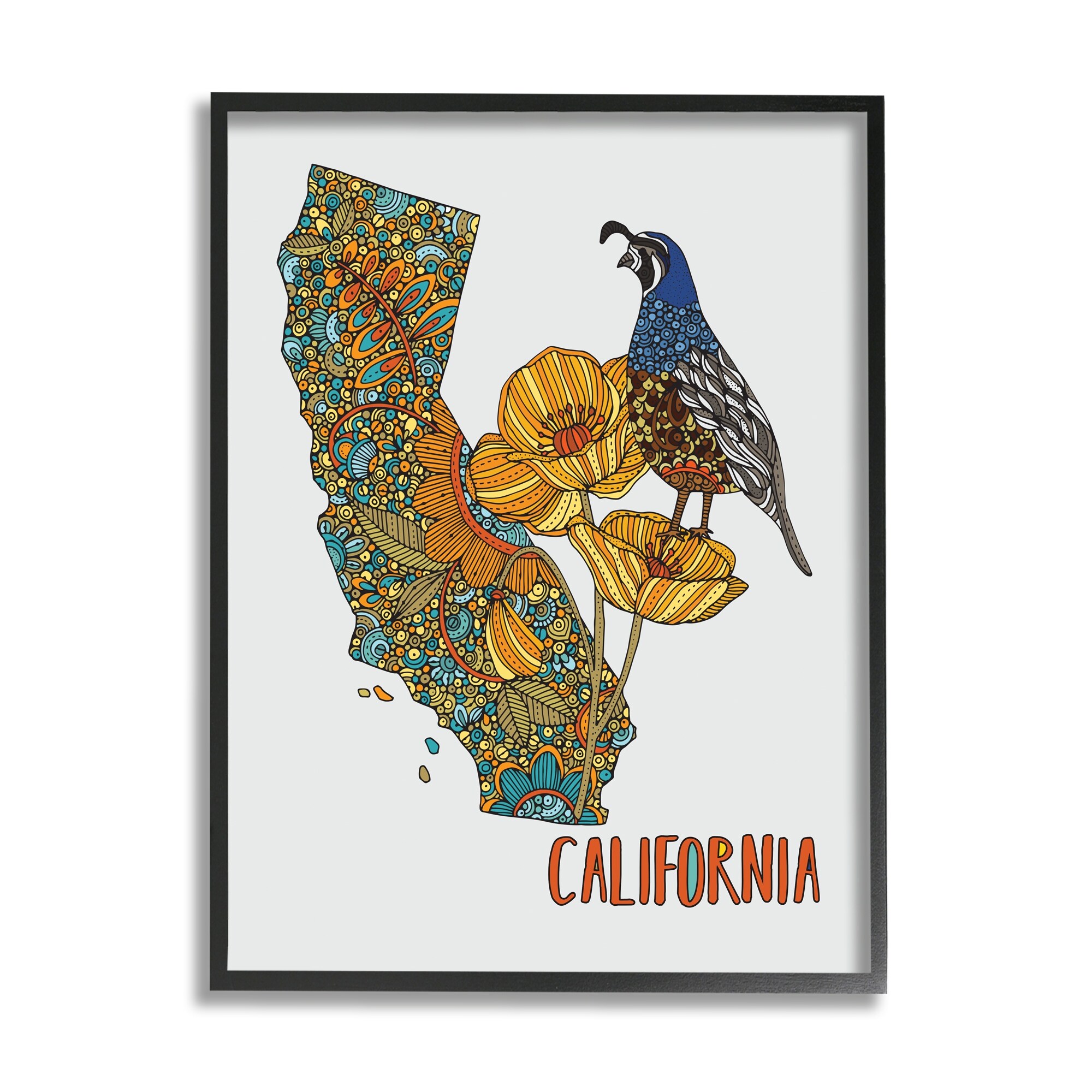 Stupell Industries California State Poppy Flowers Quail Bird Floral Details Framed Wall Art, Design by Valentina Harper