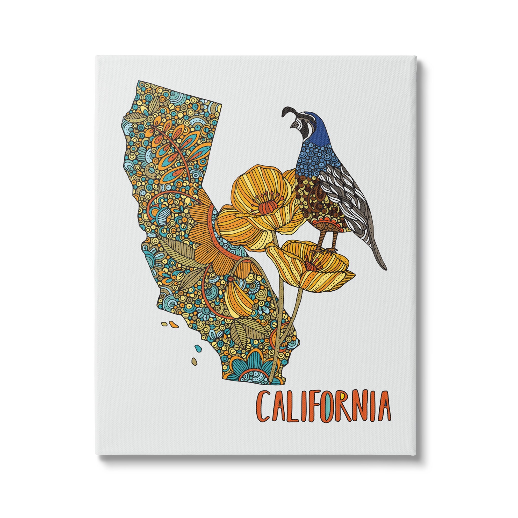 Stupell Industries California State Poppy Flowers Quail Bird Floral Details Canvas Wall Art, Design by Valentina Harper