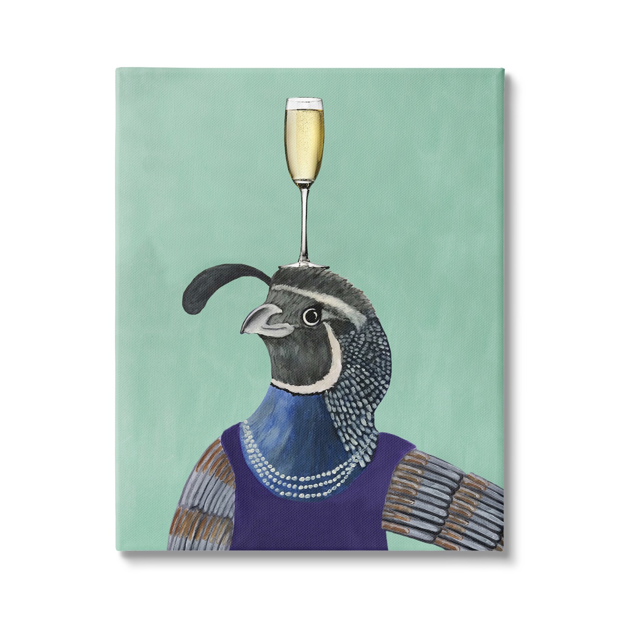Stupell Industries Quirky Quail Bird Wearing Necklace Champagne Glass Canvas Wall Art