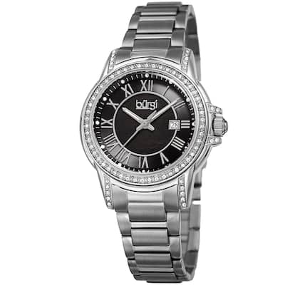 Burgi Women's Swiss Quartz Crystal Silver-Tone Strap Watch