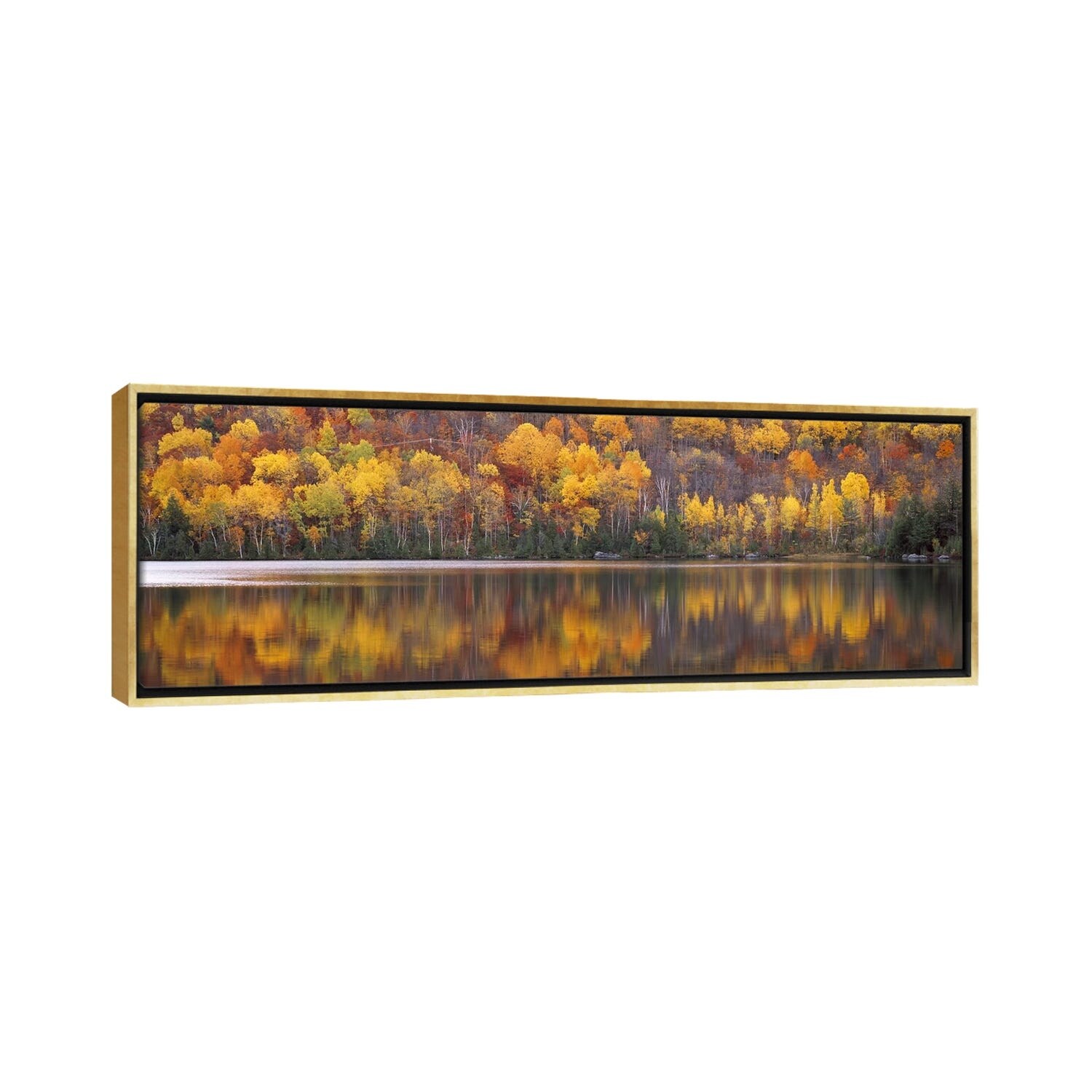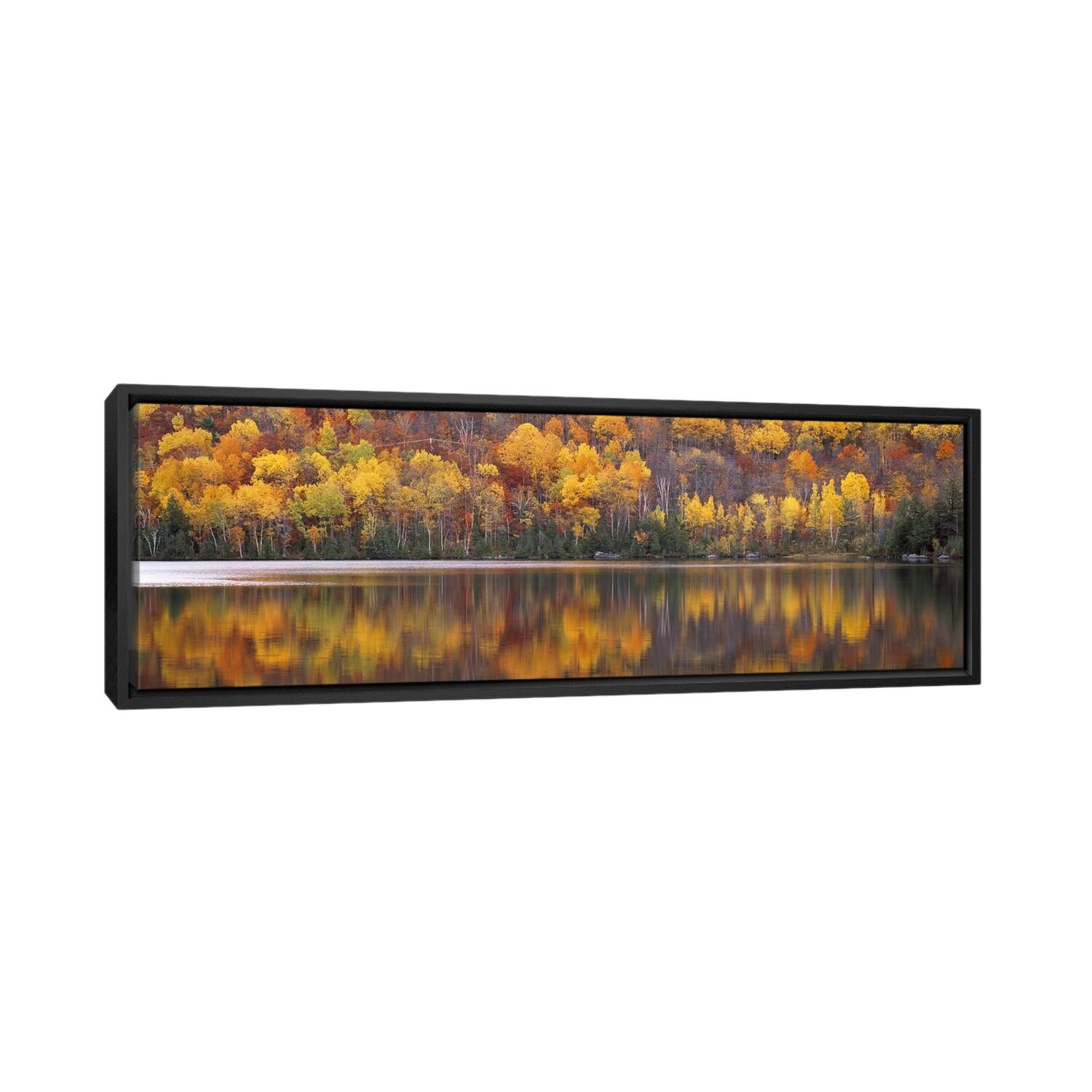 "Fall foliage along river in Quebec, Canada" Black Float Frame Canvas Art