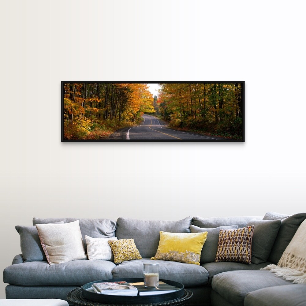 "Highway Through a Forest Laurentides Quebec Canada" Black Float Frame Canvas Art