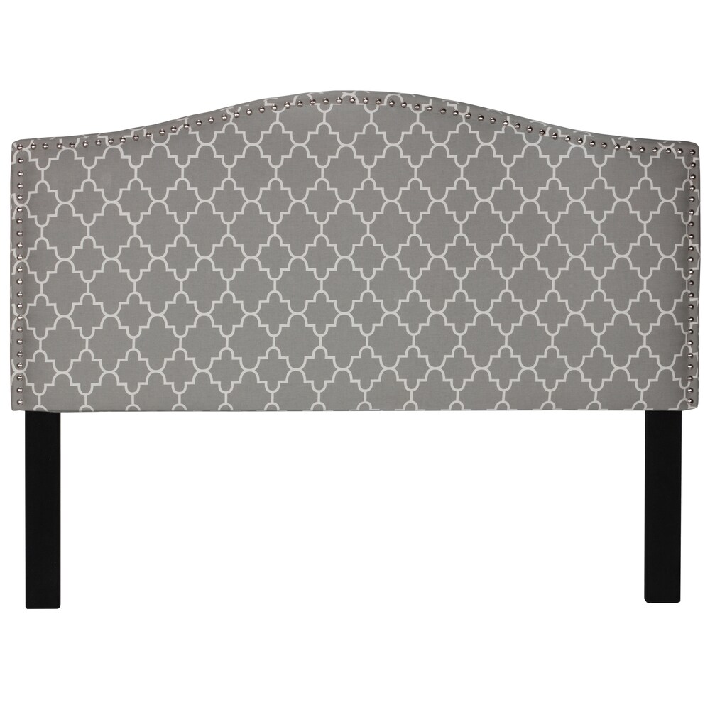 Cortesi Home Lena Grey Upholstered Queen Headboard with Nailhead Trim