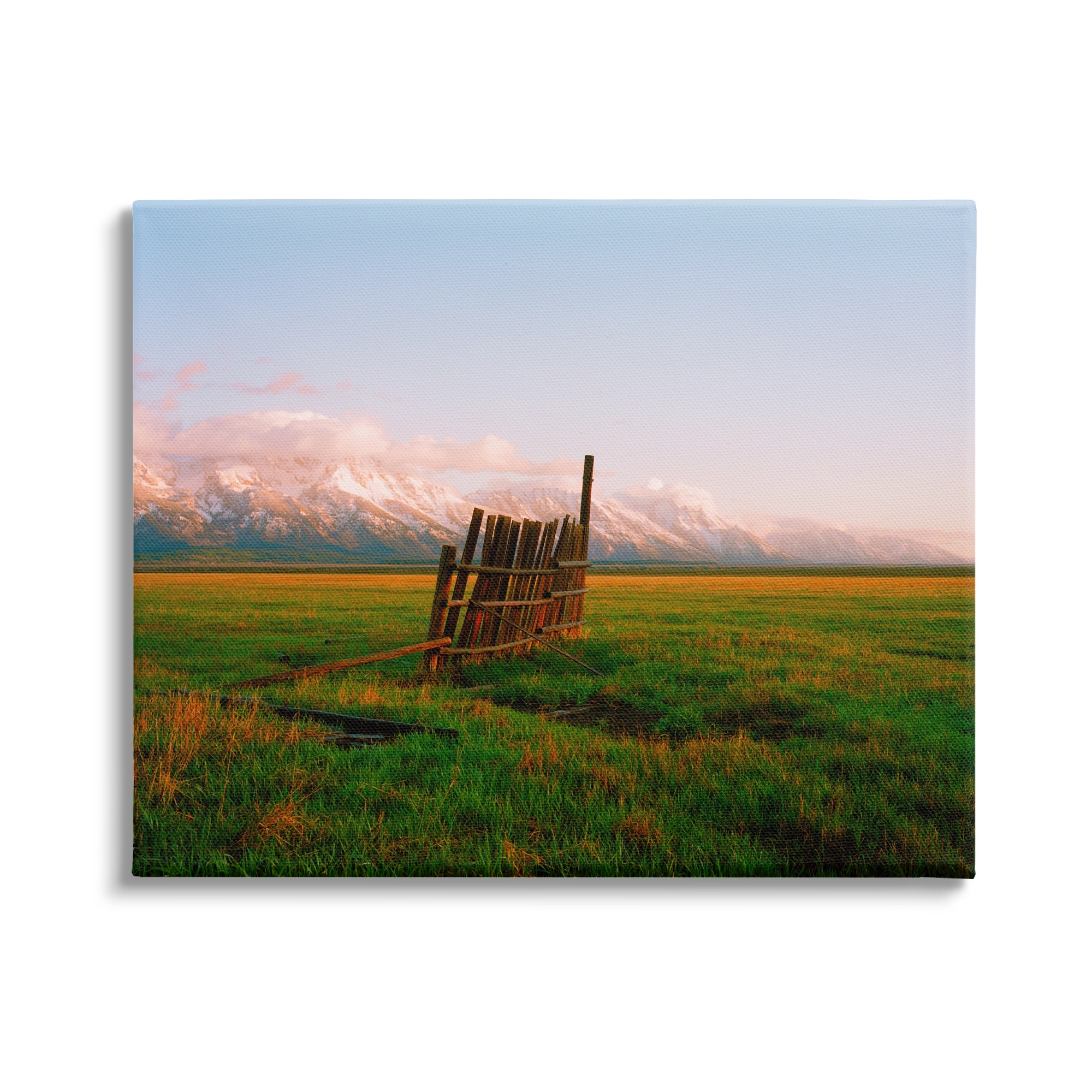 Stupell Industries Ranch Fence Grasslands Mountain Range Clear Sky Sunrise Canvas Wall Art - Multi-Color