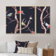 Designart "Fall Trees With Red Birds on Black" Traditional Framed Canvas Wall Art Set of 3 - 4 Colors of Frames