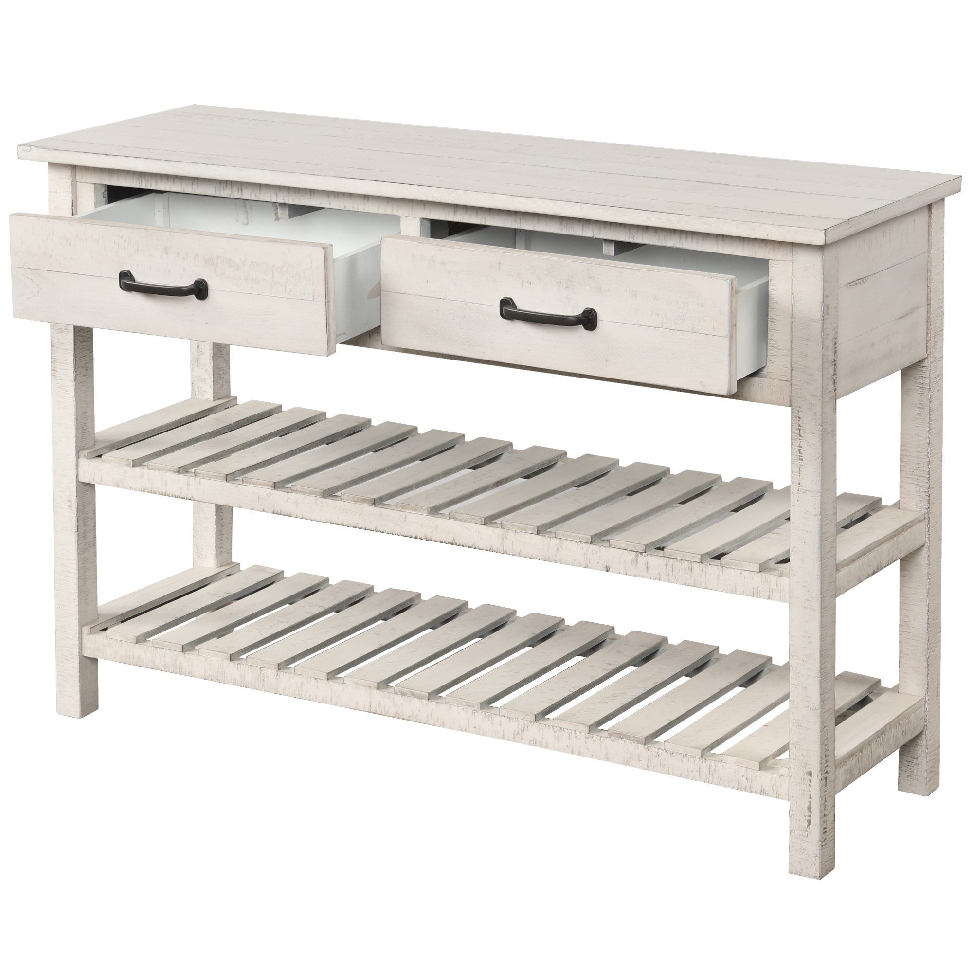 Retro Design Console Table with Two Open Shelves & 3 Drawers Pine Solid Wood Frame and Legs for Living Room