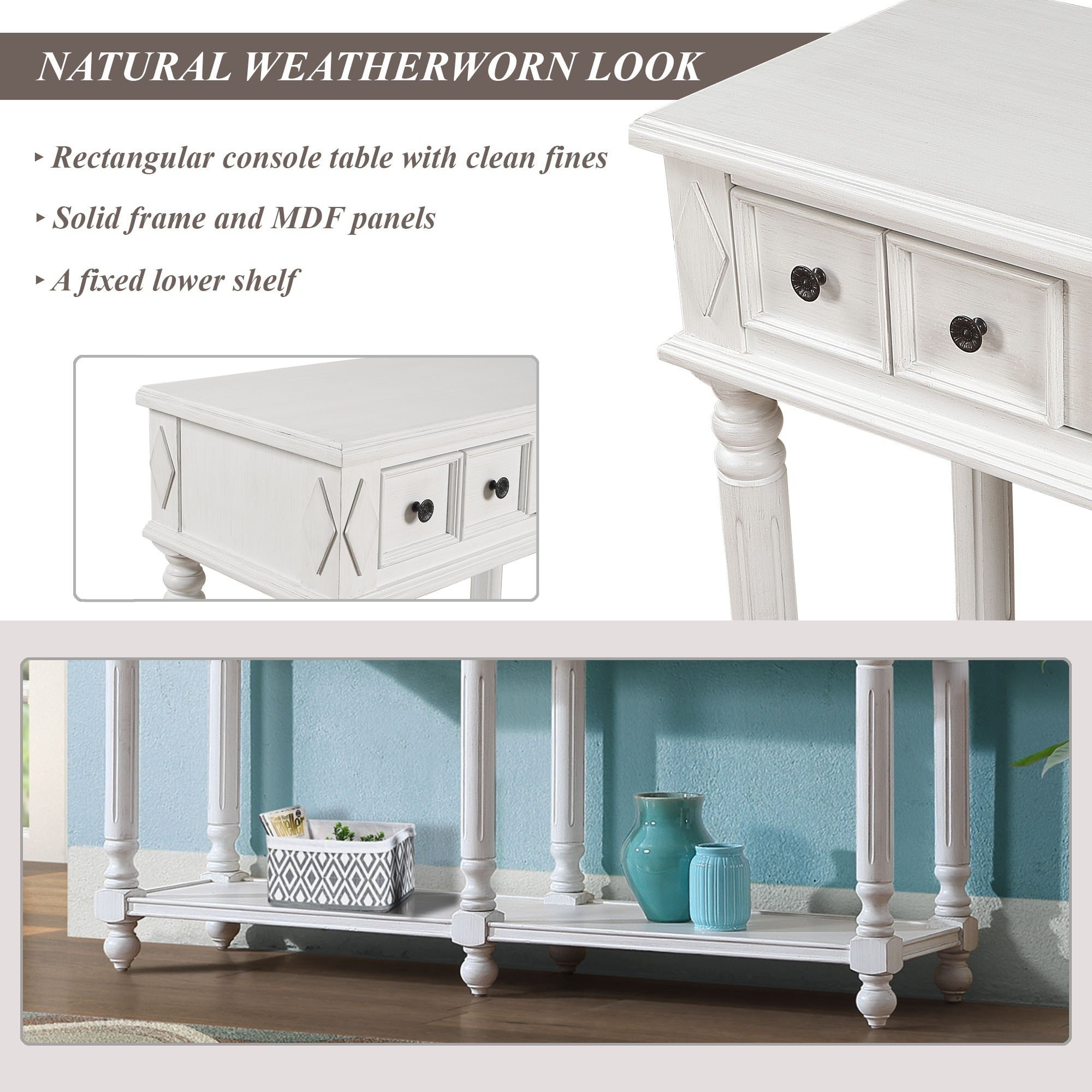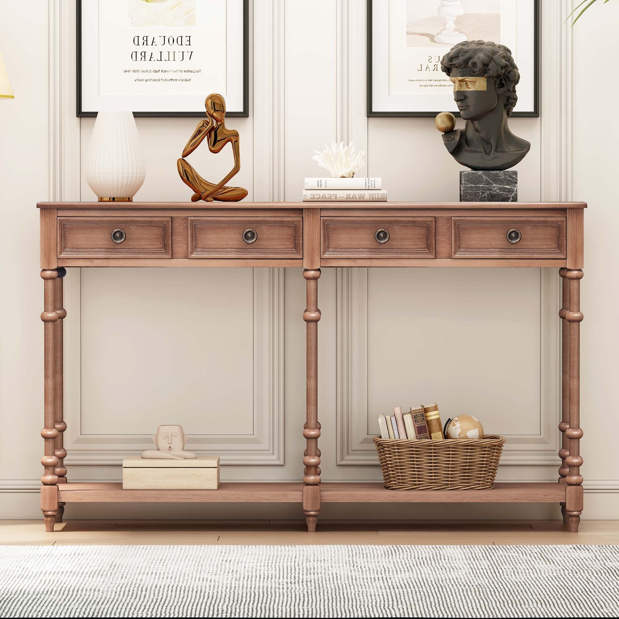 Retro Console Table Entryway Table 58" Long Sofa Table with 2 Drawers in Same Size and Bottom Shelf for Storage