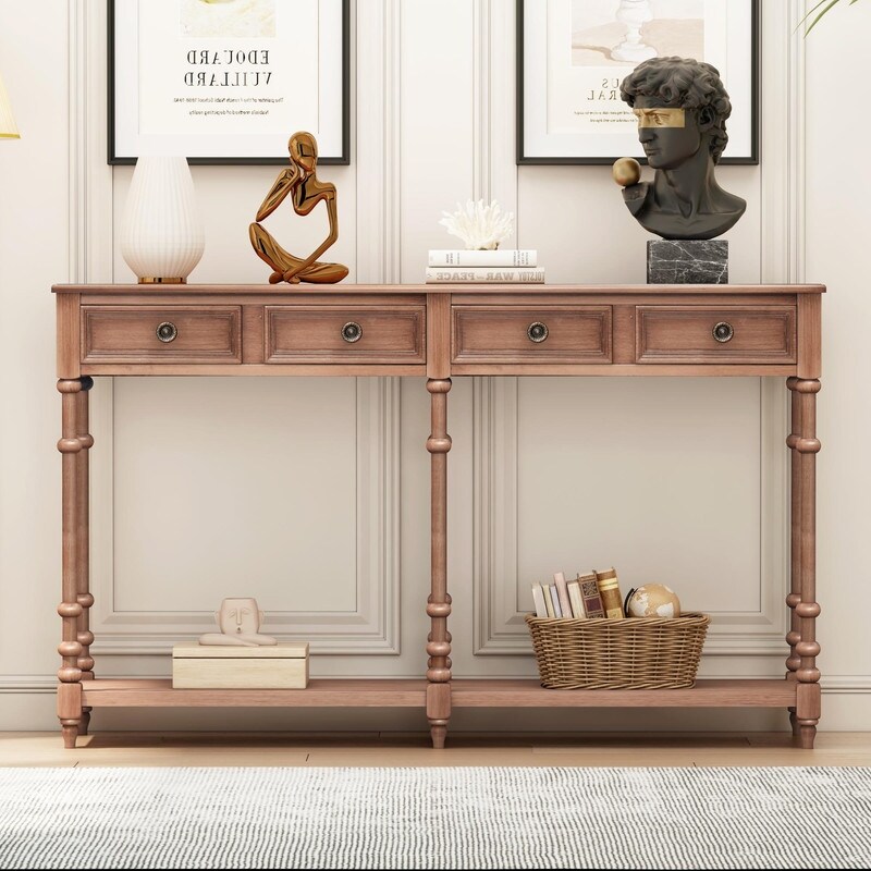 Retro Wood Console Table, 55 Inch Sofa Table Entryway Table