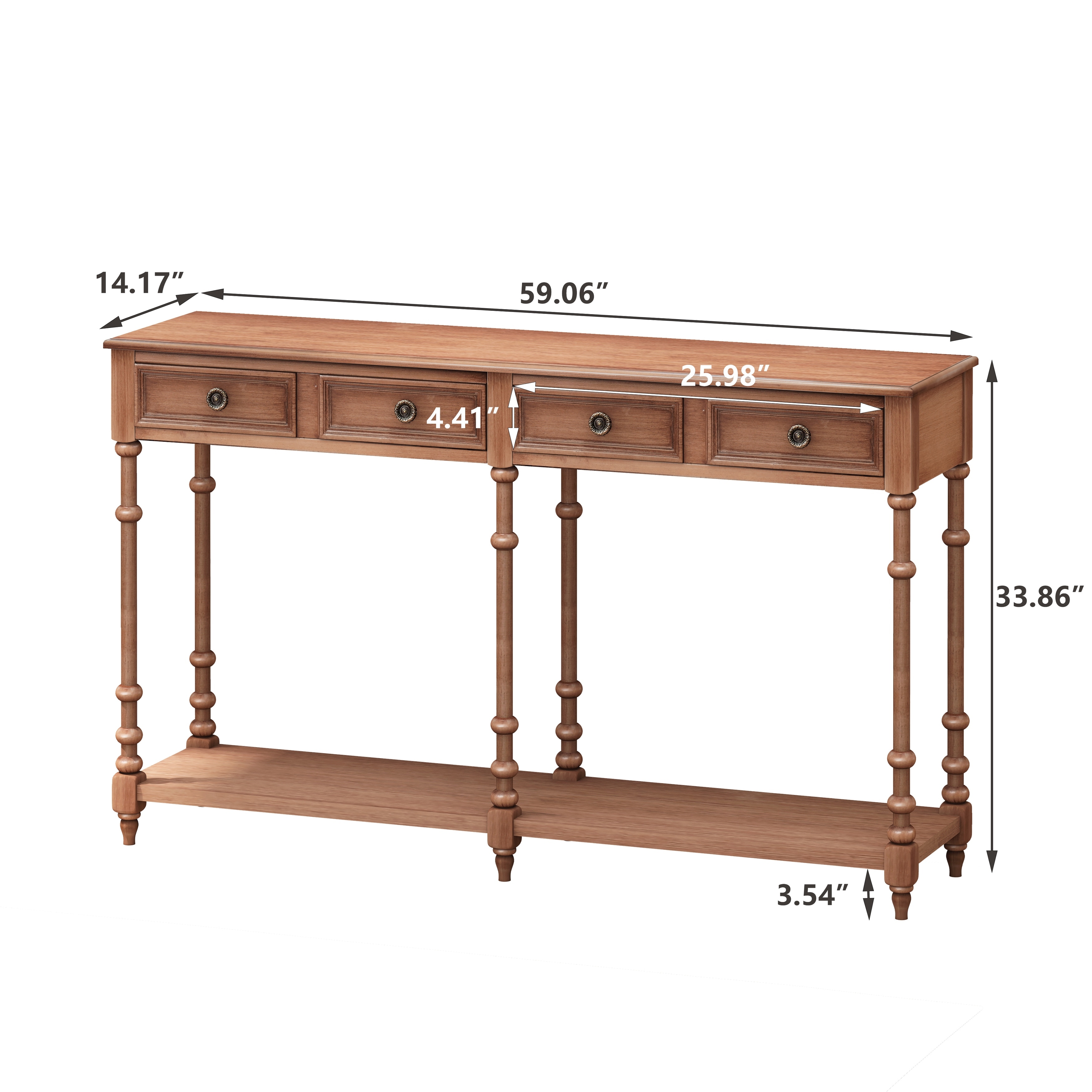 59.06" Retro Console Table with 2 Drawers and Bottom Shelf