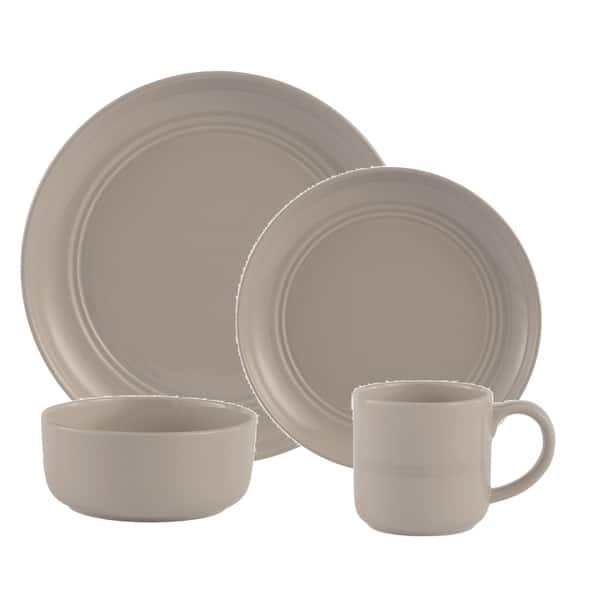 Dinnerset 16Pcs Grey Stoneware Ridge