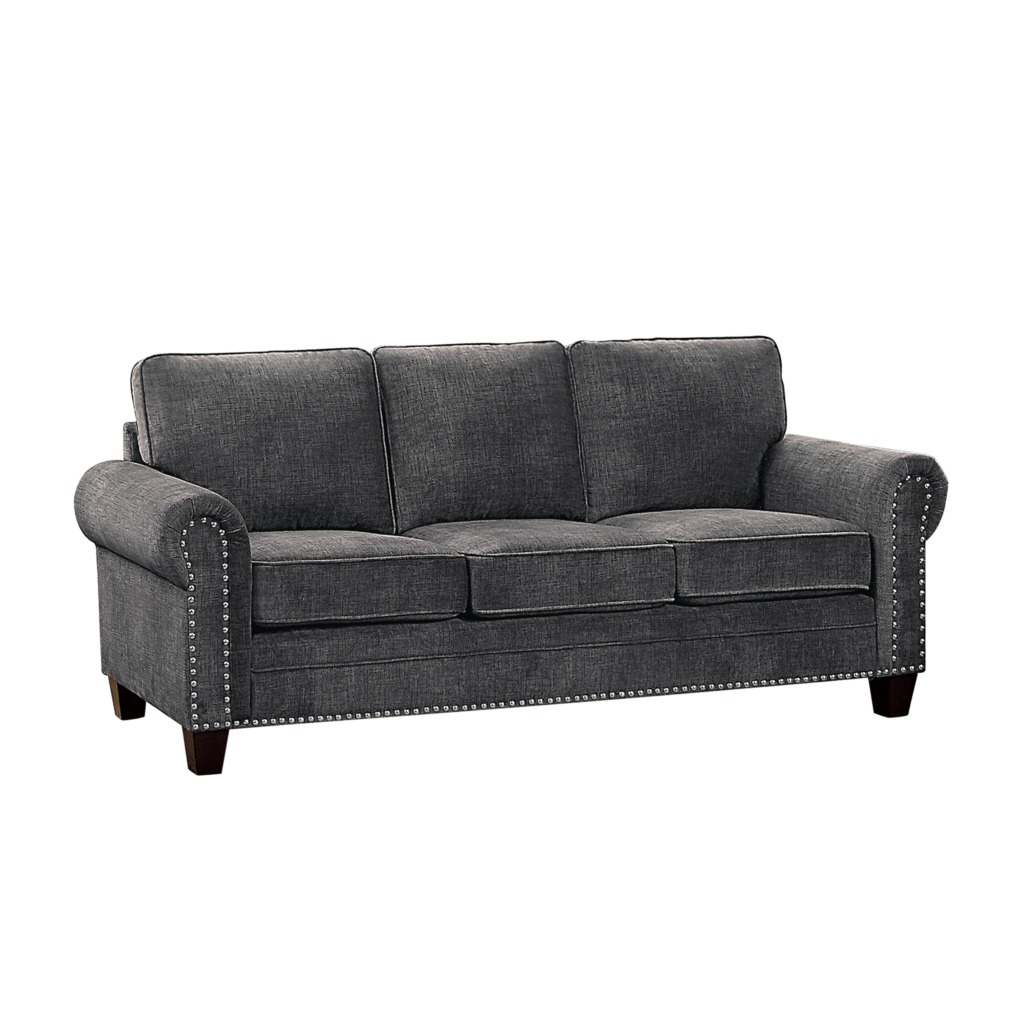 Modern Loveseat Sofa Living Room Sofa, Polyester Thicken Padded Seat Rolled Arms Sofa with Wood Leg & Nailheads Decoration
