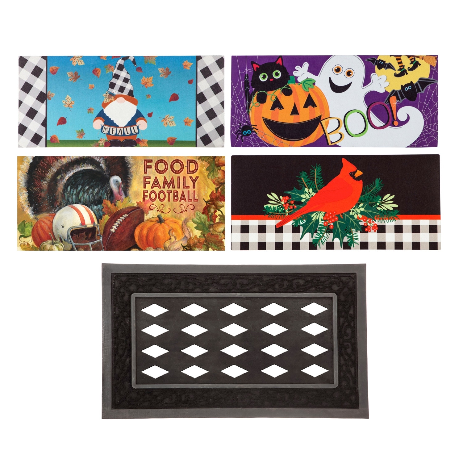 Sassafras Fall Holiday Set of 4 Mats with Rubber Mat Display Frame, Collection #5 - Multi-Color