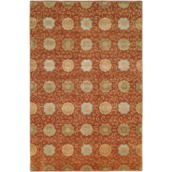 Nirvana Rust/Beige Wool Blend Floral Hand-knotted Area Rug