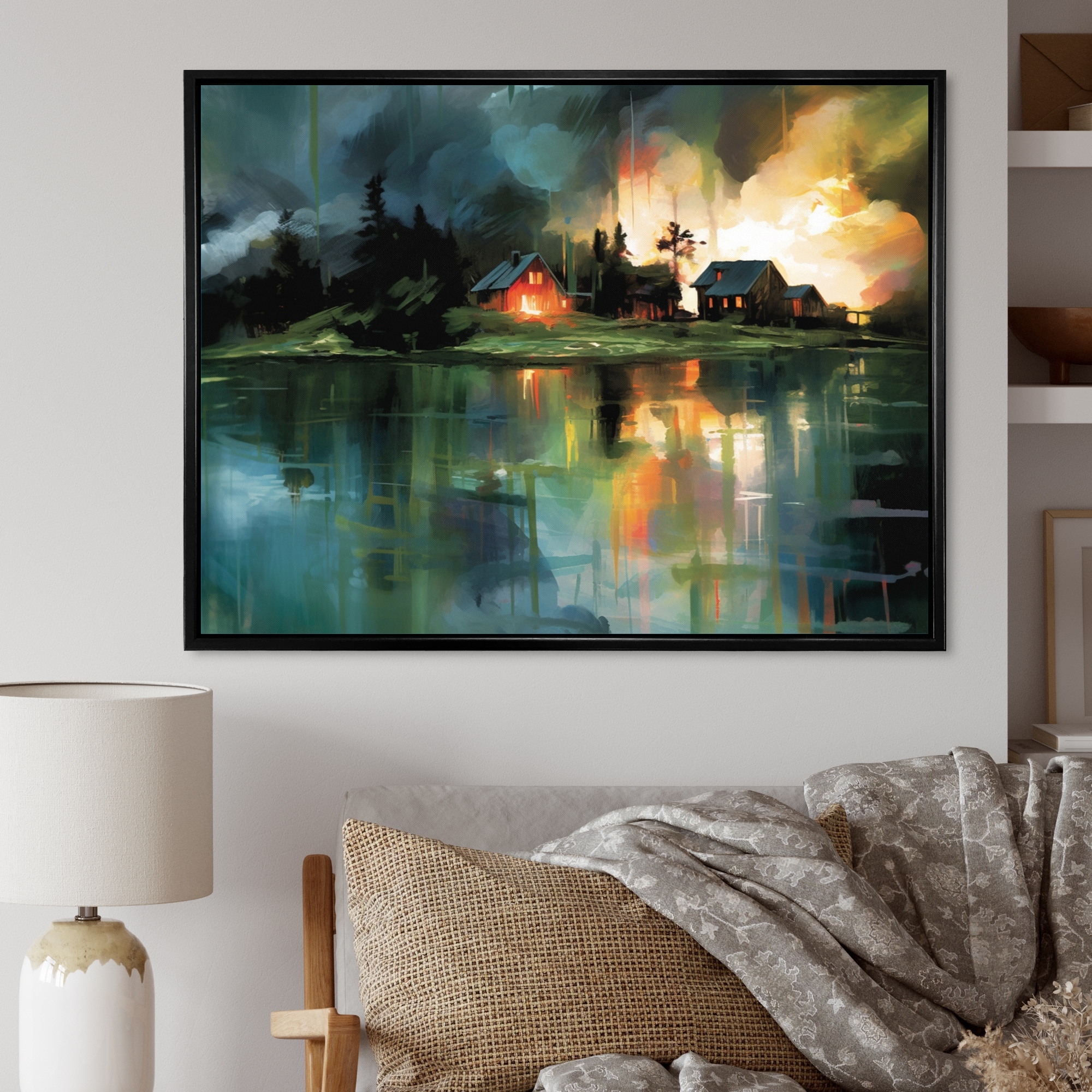 Designart "Green Abstracted Scenic Views Ii" Abstract Landscape Framed Canvas Art Print