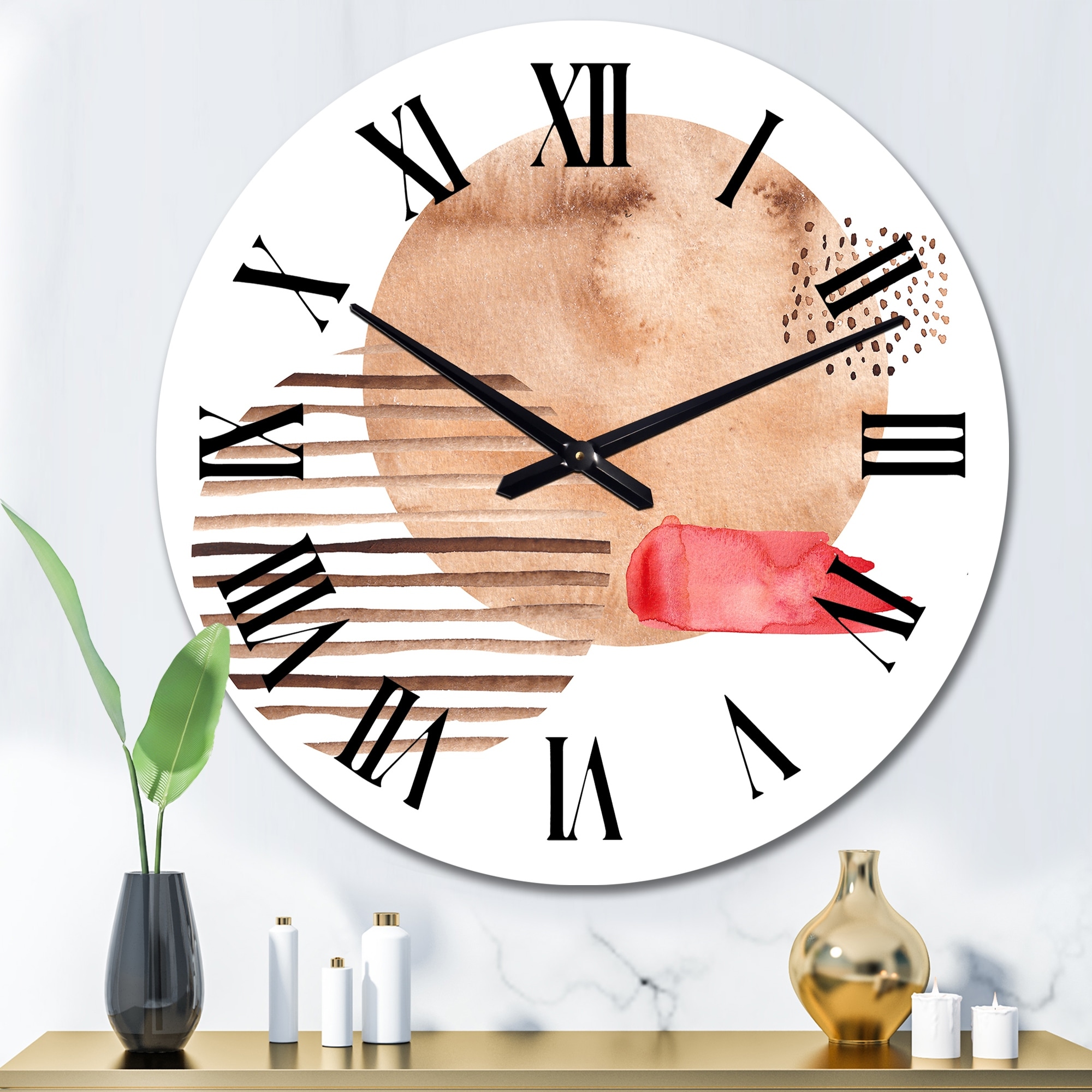 Designart 'Abstract Geometric Shapes in Earth Tones VII' Modern wall clock
