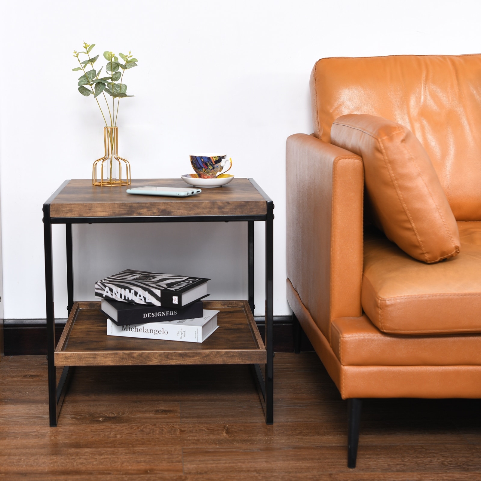 Rustic 2-tier Side Table/Nightstand with Metal Frame
